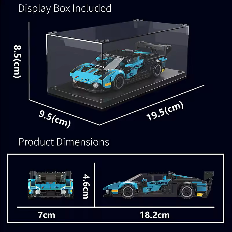 Díky dynamickým detailům interiéru, kompaktním rozměrům karoserie a tradiční barevné kombinaci tento model věrně kopíruje design a konstrukční vlastnosti skutečného sportovního vozu. Je vyroben s precizností, která potěší nejen sběratele, ale i milovníky automobilů. Součást balení je také vitrína, do které můžete model auta stylově vystavit a ochránit ho před prachem či poškozením. Rozměr vitríny je 19,5 x 9,5 x 8,5 cm, což umožňuje ideální umístění na polici nebo stůl, kde se stane atraktivním doplňkem jakéhokoli interiéru.