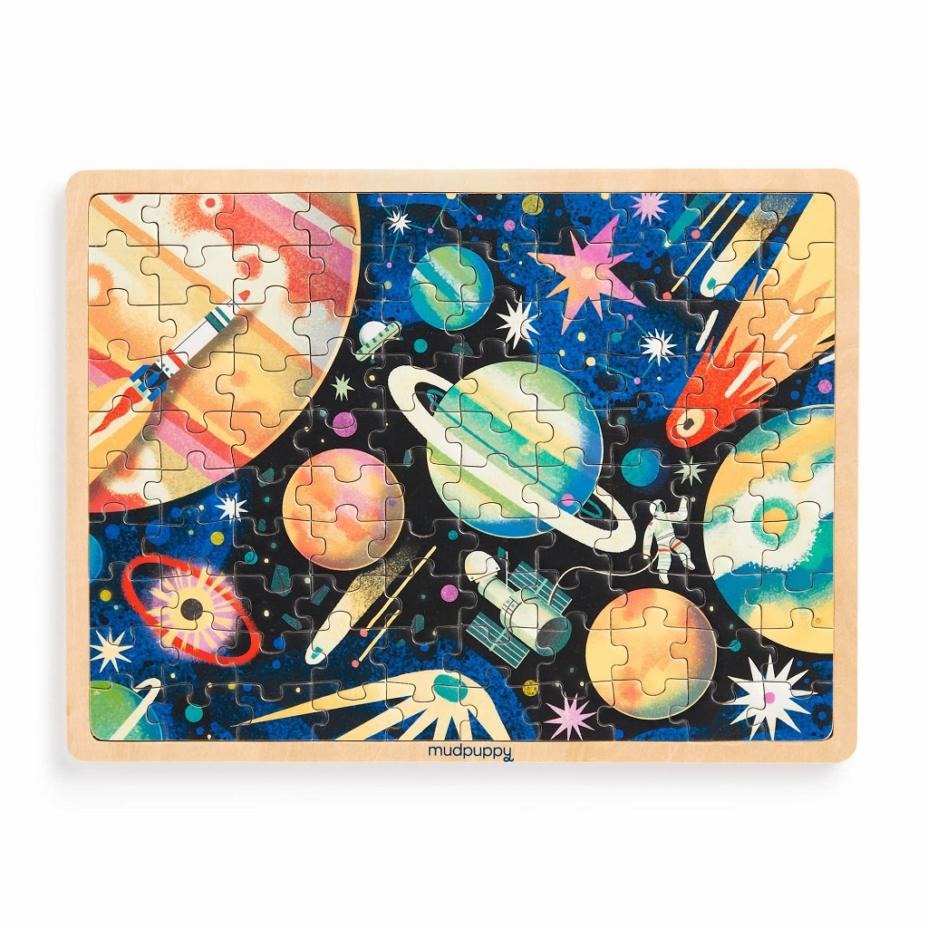 Puzzle zavede děti do vesmíru, zobrazuje krásné a odvážně ilustrované planety, asteroidy a komety. Obsahuje stojan, který promění vaše hotové puzzle v jedinečnou domácí dekoraci.