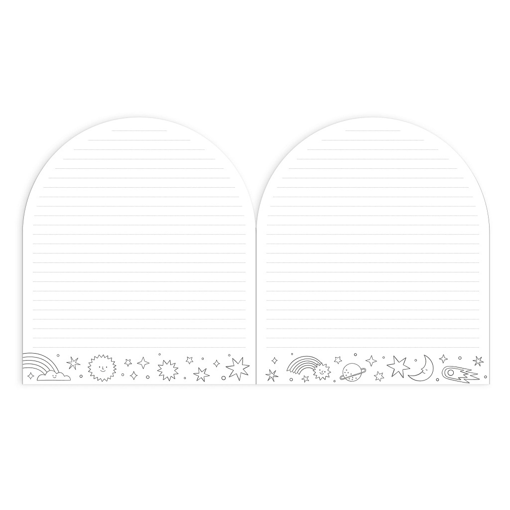 Tento kreativní set Vám v batůžku nesmí chybět! K dispozici jsou stránky pro zápis a skicování, 2 archy se samolepkami, omalovánky a samozřejmě spousta zábavy! Přiložená vícebarevná tužka umožňuje vybarvování, kreslení a psaní v jakékoli barvě duhy!