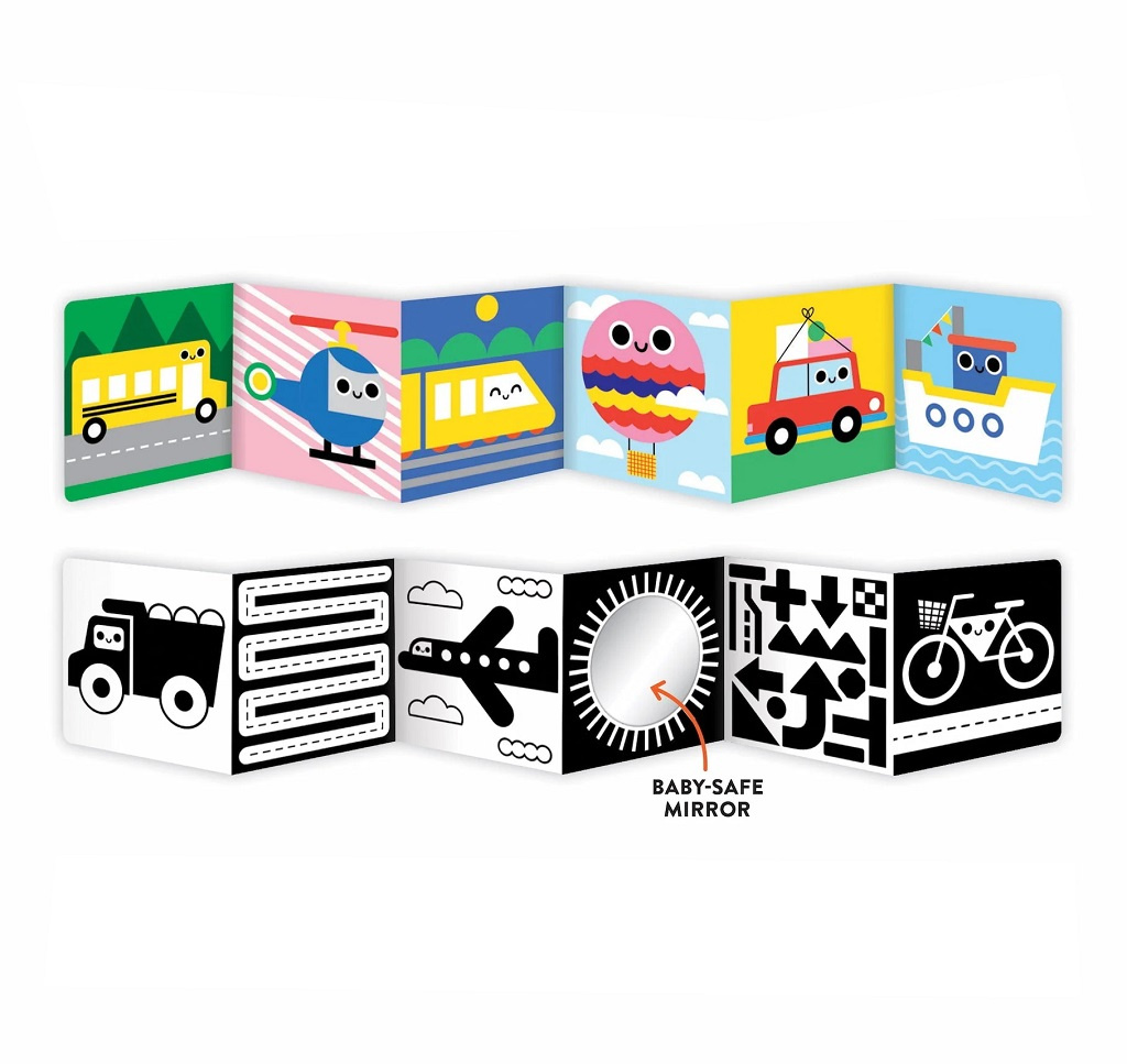 Užijte si čas se svým miminkem na maximum. Vaše děťátko si zamiluje krásné obrázky v této oboustranné knížce, ale také zrcátko, do kterého se může na sebe dívat. Otevřená knížka může stát na koberci, v posteli nebo v postýlce, takže je dokonalým doplňkem pro chvíle strávené ležením na bříšku. Zrcátko je bezpečné pro děti.