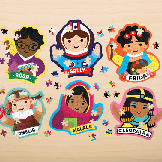 Malé puzzle s překvapením obsahuje 70 dílkové puzzle. V každé krabici je jedna z postavicek a to Amelia, Rosa, Sally, Malala, Frida nebo Kleopatra. Které puzzle Feminist je uvnitř krabice? To je to překvapení! Obsahuje přílohu s biografickými informacemi o uváděné ženě pro přidanou vzdělávací hodnotu. Umělkyně Lydie Ortiz.