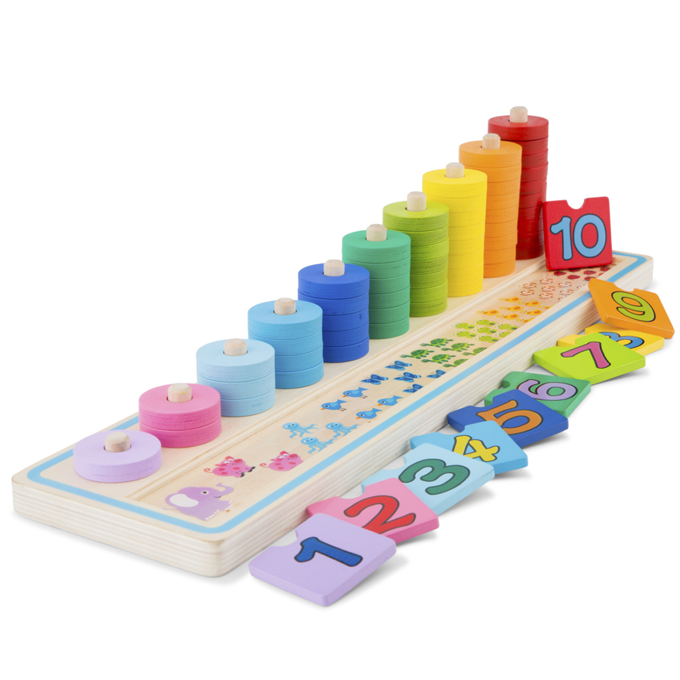 Tato hra děti od 3 let naučí hravou formou počítat, pomůže jim také s rozvojem jemné motoriky, logického myšlení a vnímání barev. Součástí sady je herní deska, 55 kroužků a 10 potištěných karet s předlohou s čísly 1 až 10. S touto hrou si děti užijí hodiny zábavy.