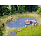 Modrá jezerní fólie usnadňuje tvorbu realisticky vypadajících vodních ploch. Snadno se stříhá a lze ji jednoduše přilepit lepidlem, což umožňuje rychle vytvořit jezera, rybníky nebo řeky. Díky modrému laku působí vodní efekt velmi přirozeně, což ji činí ideální volbou pro modelovou krajinu i kolejiště.