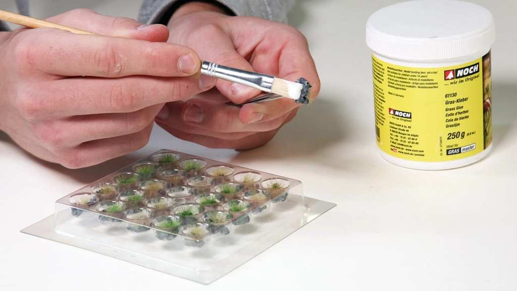 Travní trsy dodávají scenériím mimořádně přirozený vzhled v kombinaci různých travních vláken, kamínků, posypu a vloček. Díky tomu vznikají speciální varianty vhodné i pro náročnější použití. Trsy jsou ideální pro tvorbu krajiny na modelových železnicích, ale skvěle se hodí také pro modeláře, kteří zkrášlují podstavce nebo malé scénické prvky. Varianta suchá tráva je obzvláště vhodná pro letní louky, lesní podrost, okraje cest nebo mírně zvlněné terény. Jednotlivé trsy lze snadno přilepit běžným lepidlem na tvorbu krajiny. Pokud se mají zapracovat do větší travnaté plochy, je možné je usadit přímo do podkladu natřeného lepidlem na trávu. Následným zasypáním posypem, vločkami a travními vlákny vznikne souvislá a přirozeně působící zelená plocha.