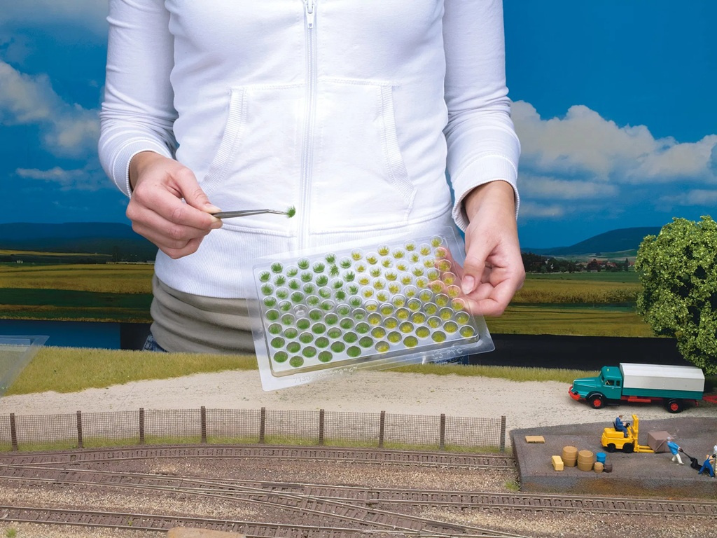 Nechte rozkvést svou fantazii! Trsy trávy s květinami přinášejí do modelové krajiny svěžest a barvy léta. Skvěle poslouží k realistickému dotvoření luk, náspů, okrajů lesů i dalších přírodních scenérií. Květinové záhony vyniknou v parcích nebo zahrádkářských koloniích. Kvetoucí trsy trávy oživí každou vegetaci a dodají celé scenérii veselý a letní vzhled. Jsou velmi univerzální a snadno se používají, takže se bez problému začlení do jakéhokoli prostředí.