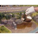 Water-Drops® transparent jsou pro modelová vodní díla jako stvořené! Materiál ve formě granulí se dobře zpracovává a je ideální pro vytváření stojatých i tekoucích vodních ploch v modelové krajině. Jeho hlavní výhody spočívají v jednoduchém zpracování a možnosti opětovného nahřátí po vytvrzení, například pomocí silného fénu. Díky tomu lze dodatečně modelovat vlny nebo odstranit drobné škrábance z vodní hladiny. Water-Drops® jsou dostupné ve variantách transparent, easy a color. Přednosti varianty Water-Drops® transparent je snadné použití, rychlé zpracování díky krátké době tuhnutí, možnost obarvení, úpravy povrchu pomocí tepla i po vytvrzení. Skvěle se hodí pro tvorbu křišťálově čistých jezer, řek a potoků. Pro barevné ztvárnění dna se doporučuje použít sadu vodních barev.