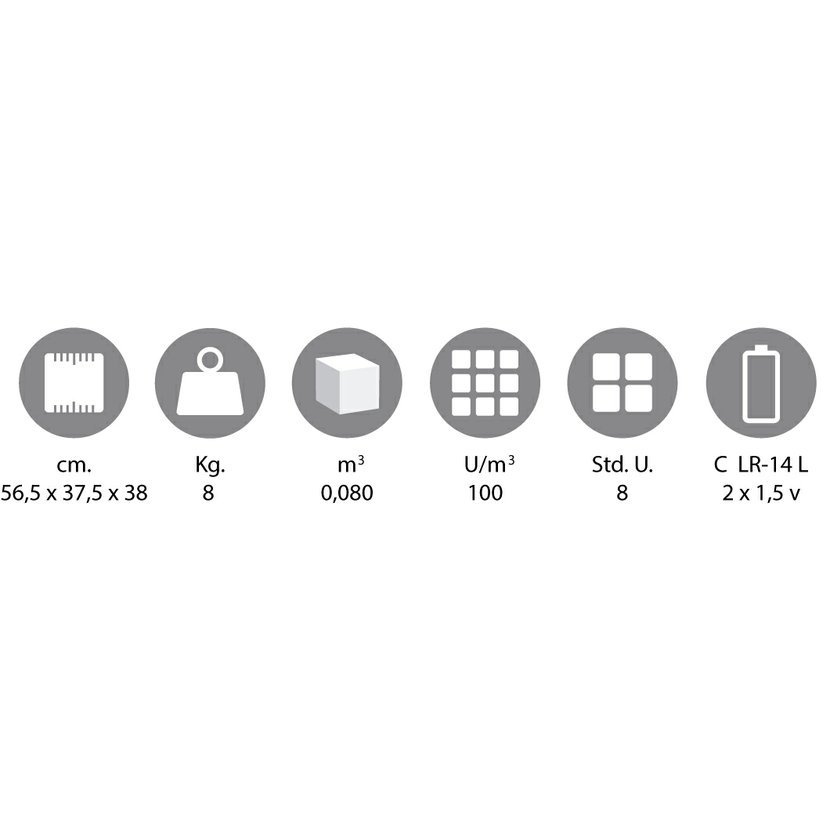 Použijte 2 baterie 1,5 V (typ C – LR14) BATERIE NEJSOU SOUČÁSTÍ BALENÍ