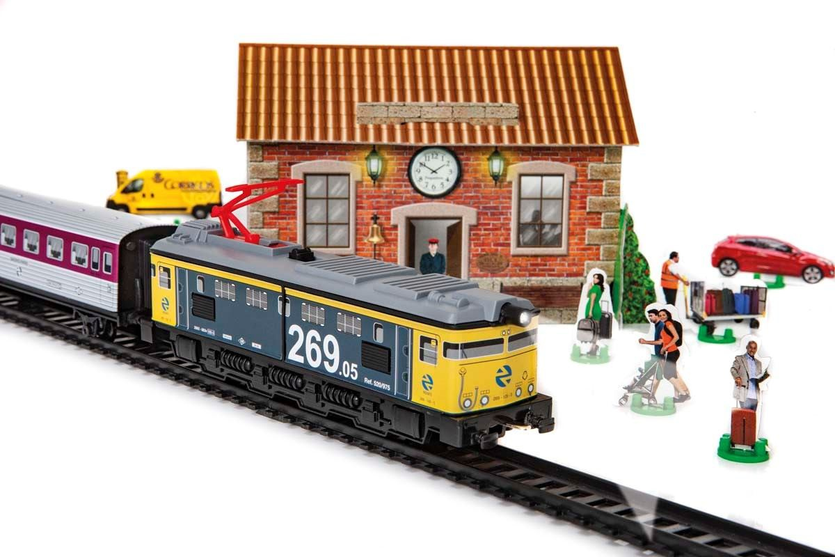 Kovový modelový vlak na baterie se skládá z lokomotivy a dvou souprav vozů (osobní tvořené třemi osobními vagony a nákladní tvořené třemi nákladními vagony) a jezdí po trati dlouhé 4,4 m. Součástí sady jsou i budova železniční stanice, modely tří vozidel (autobus, hasiči, sanitka), čtyři barely pro převoz v nákladním vlaku a aršík dvourozměrných doplňků obsahující osm postaviček a dvě autíčka spolu s deseti stojánky.