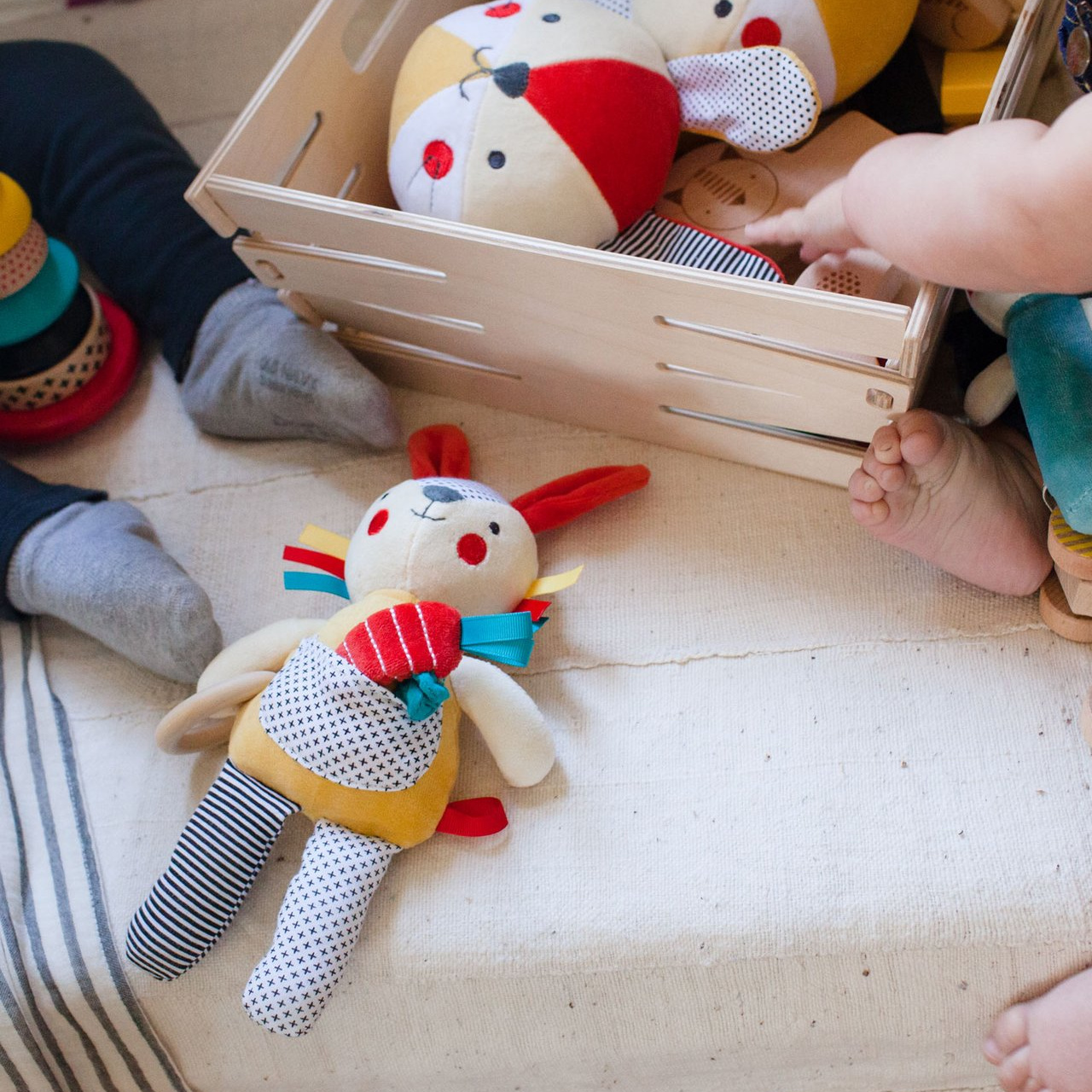 Zábava s chrastícím zajíčkem pro děti od 2 let. Tento malý zajíček je ideální organickou hračkou pro miminko. Hračka je ručně vyrobená, slouží jako kousátko, chrastítko nebo jako medvídek k mazlení. Hračka je určena pro novorozence.