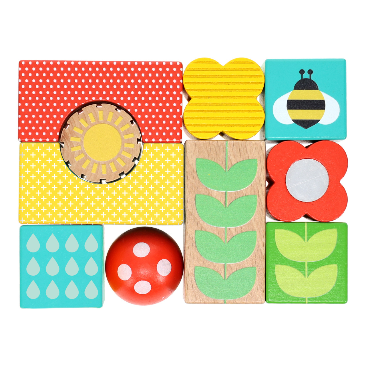Včelka, muchomůrka a květinky... Zábavné kostky od Petit Collage. Klasické dřevěné kostky. Perfektní pro rané učení smyslů. 10 kostek s jasnými, veselými barvami a ilustracemi s přírodní tématikou. Ideální pro děti od 12 měsíců.