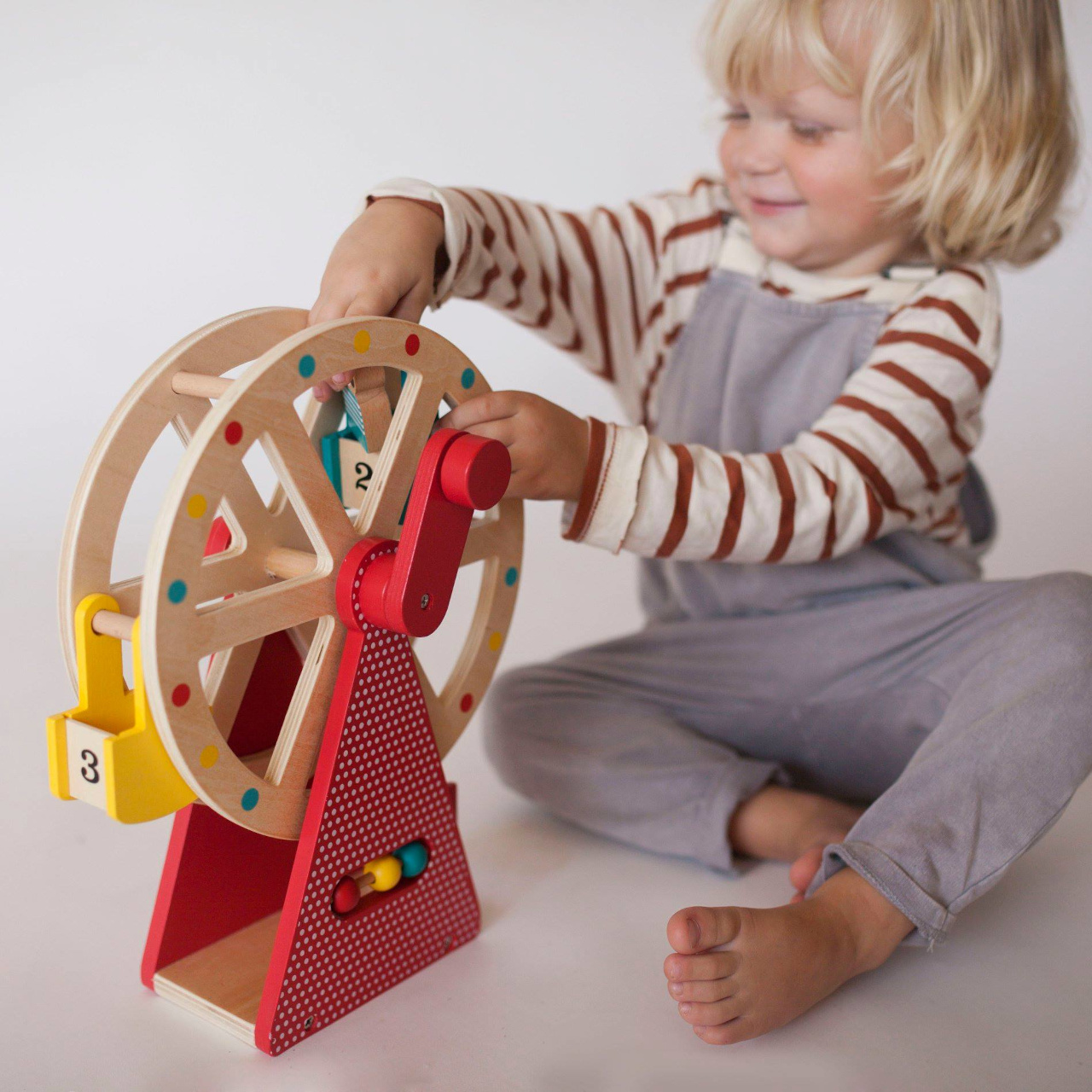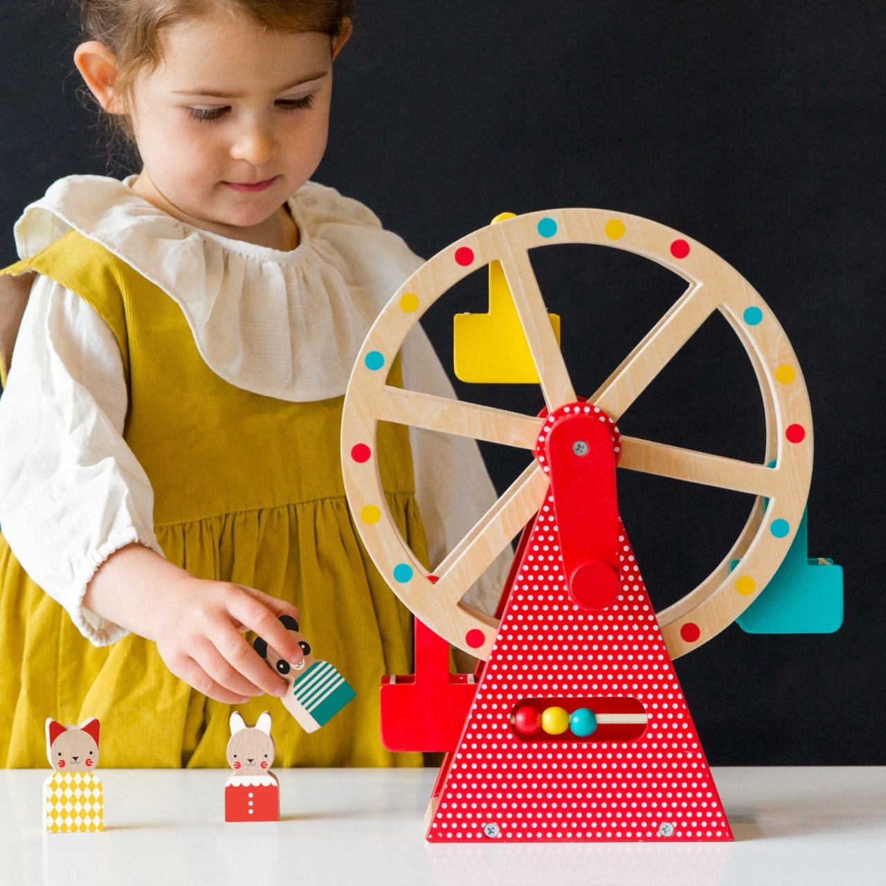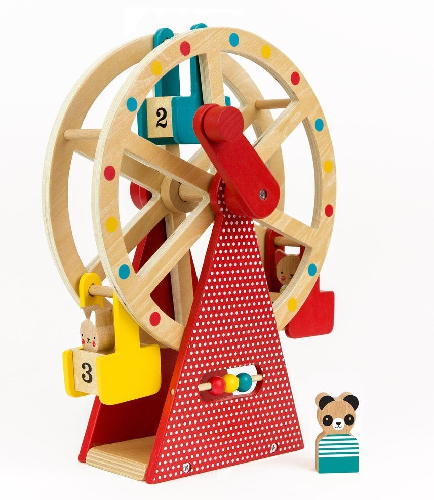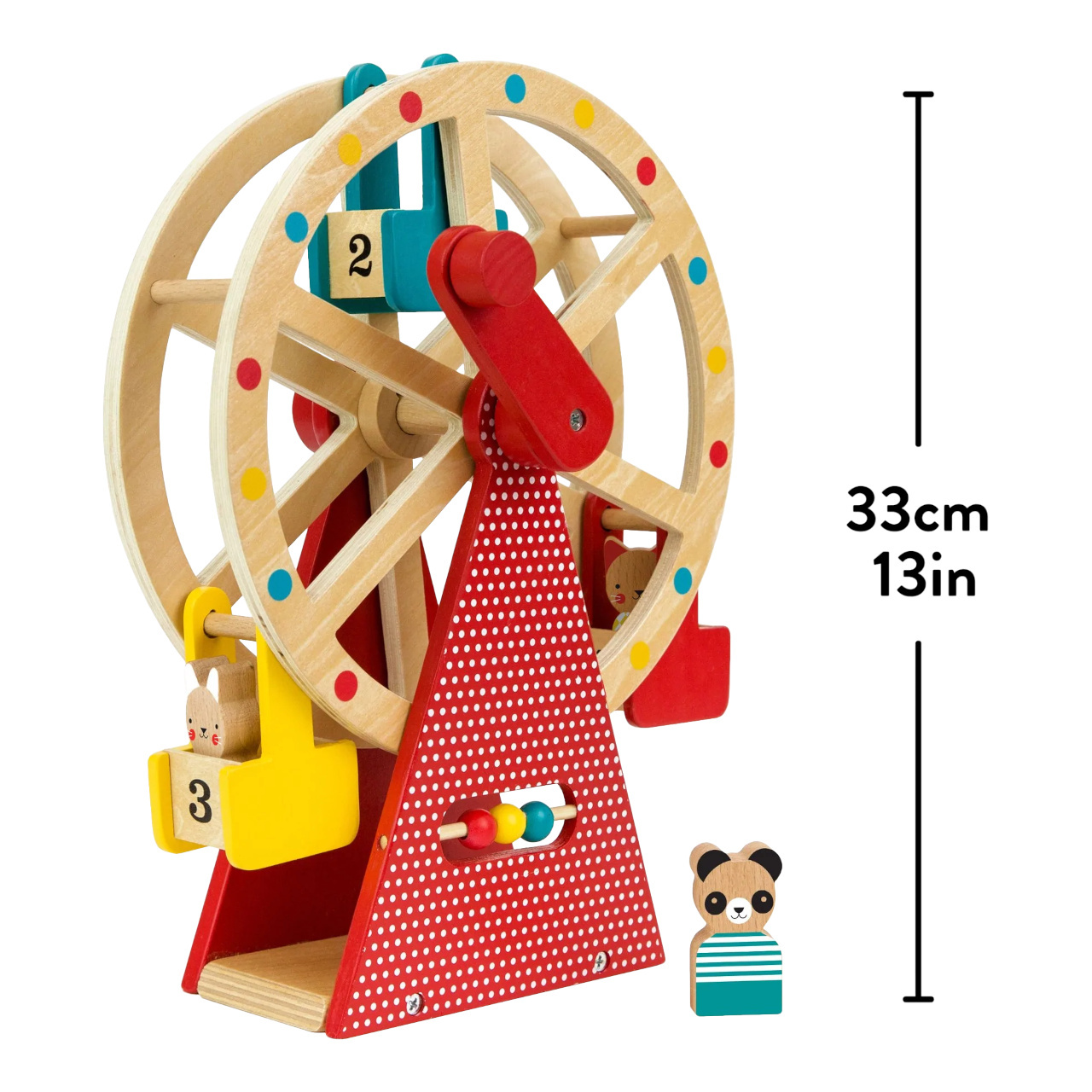 Vezměte své tři zvířecí přátele na projížďku na tomto krásně navrženém a stylovém dřevěném ruském kole. Otočte rukojeť a sledujte, jak se točí velké kolo! Použijte přiložené počítadlo například k počítání jízd. S rotujícím dřevěným ruským kolem se třemi vozíky a třemi zvířecími kamarády z bukového dřeva si užijete spoustu zábavy.
