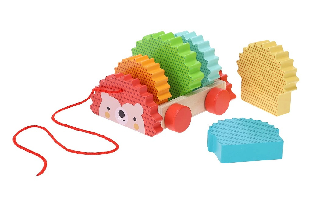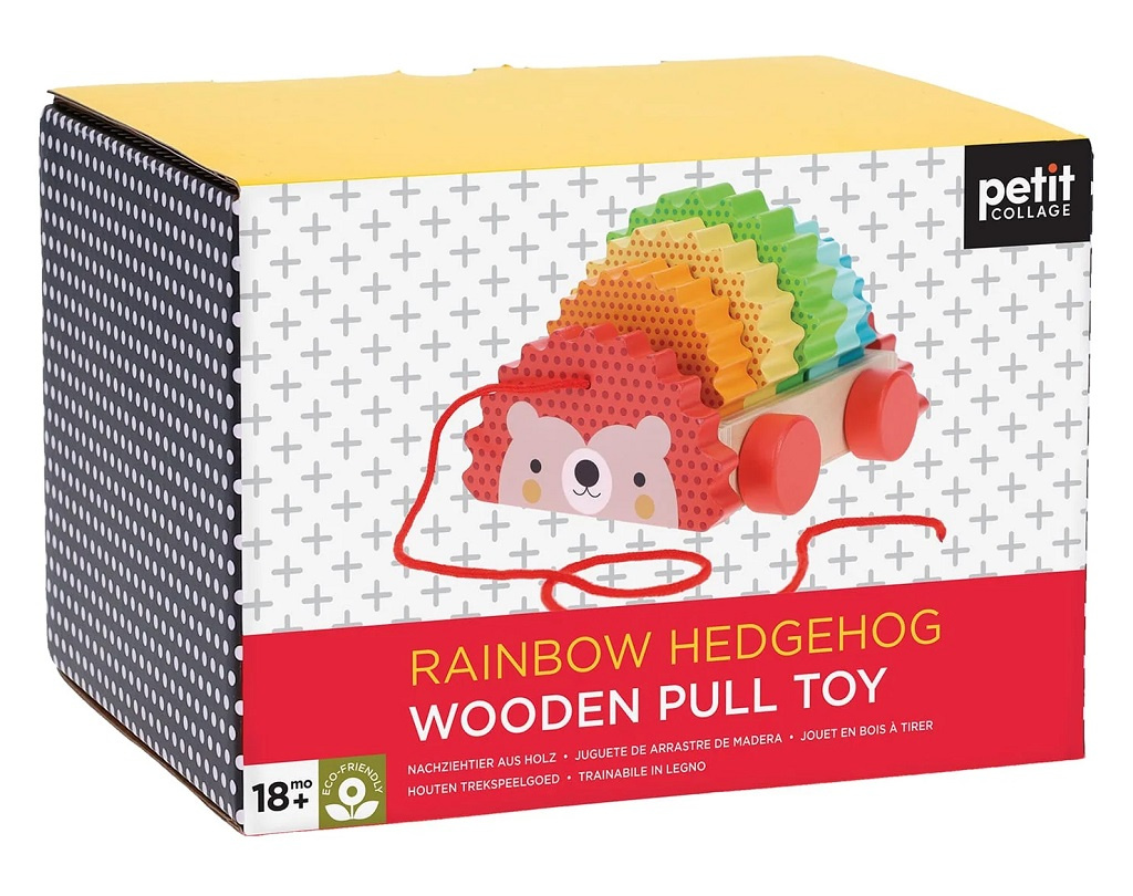 Poskládejte si svého kamaráda! Tento ježek je tahací i skládací hračkou zároveň! Díky robustnímu provedení lze jeho duhové "bodliny" snadno vkládat a odnímat. Podporuje obratnost i jemnou a hrubou motoriku.