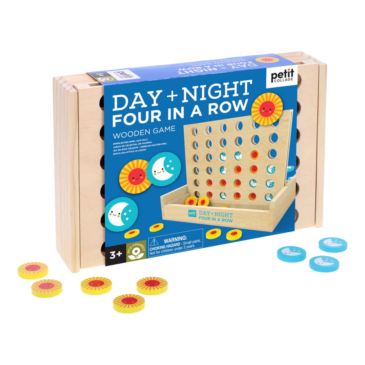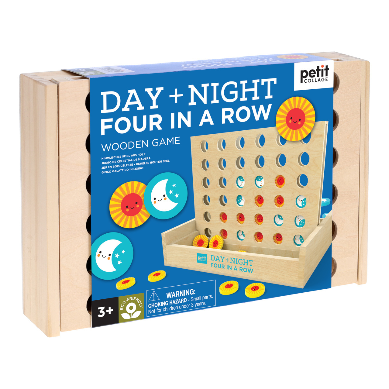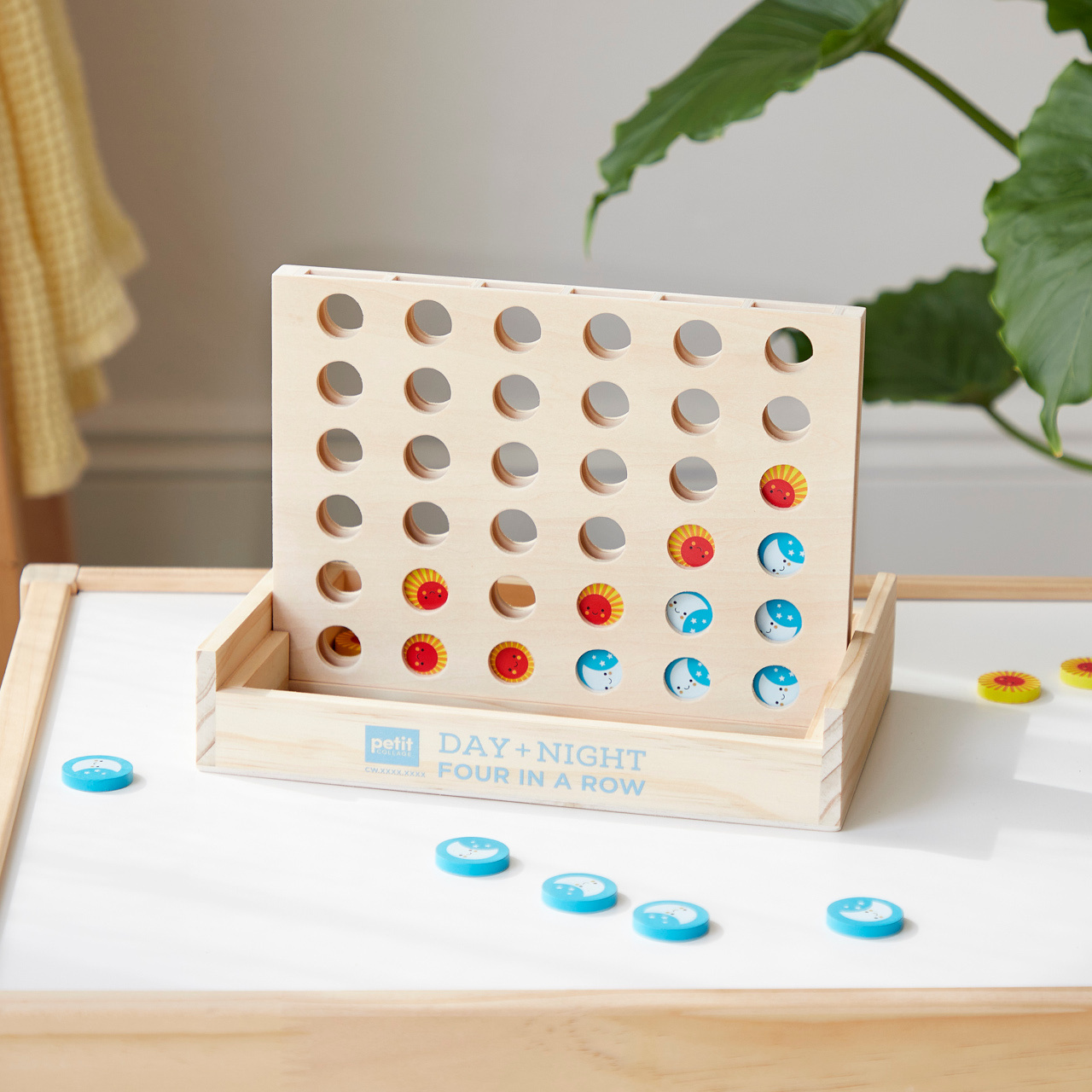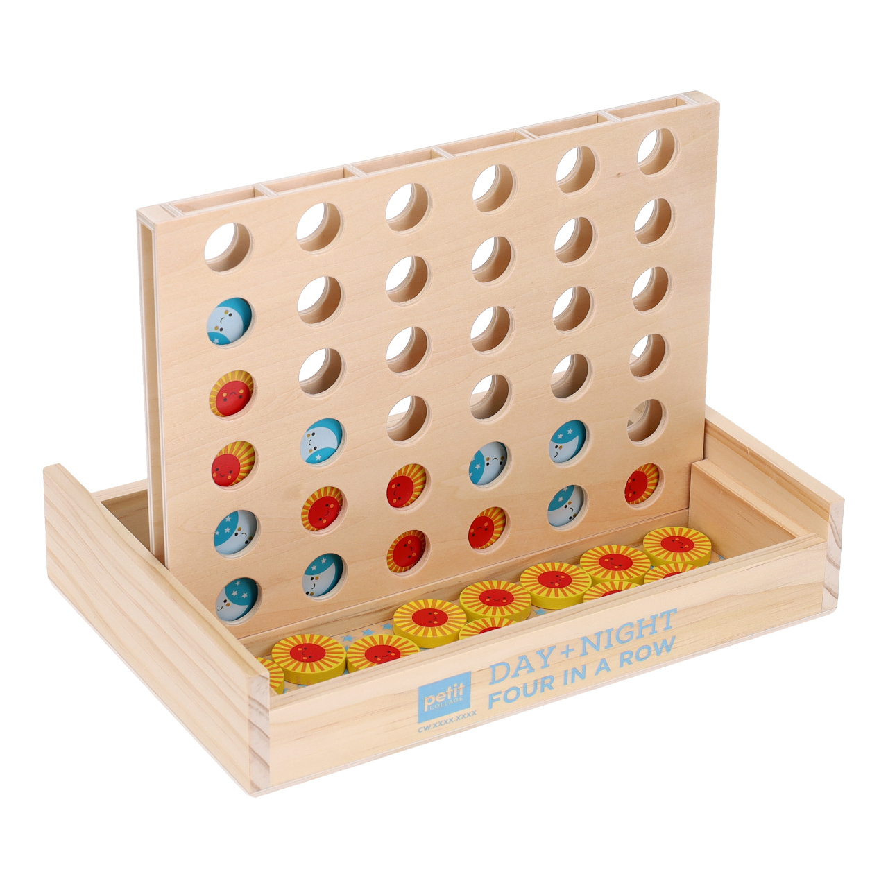 Klasická hra v nebeské verzi, dokážete jako první seřadit měsíce nebo slunce? Žetony s vesmírnými tělesy, které se při hře na děti smějou, cílem hry je seřadit 4 žetony diagonálně, vertikálně nebo horizontálně, jako v piškvorkách. Vyrobeno z FSC dřeva, vhodné od 3 let.