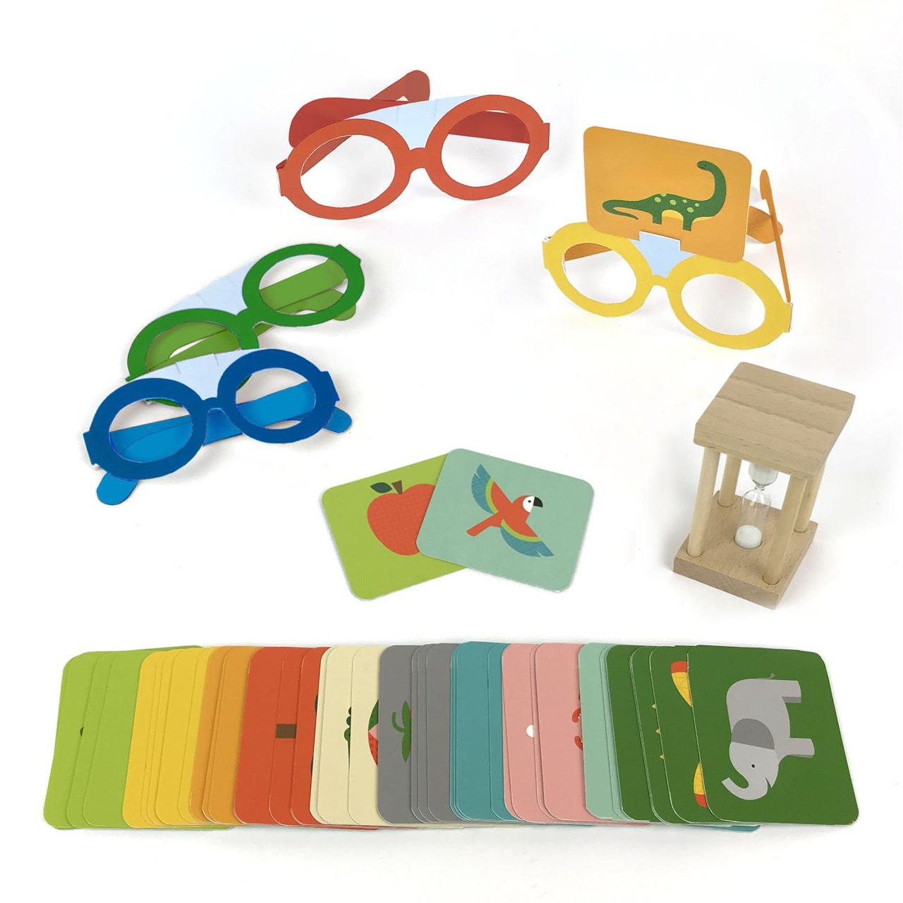 Jsem zvíře? Jsem objekt? Jsem velký/á? Vydávám zvuky? Tolik otázek, tak málo času! Rychlá hra pro celou rodinu, která Vám zaručí hodně smíchu a zábavy. Obsahuje 4 brýle s držákem na kartu, přesýpací hodiny a 50 barevných karet s obrázky.