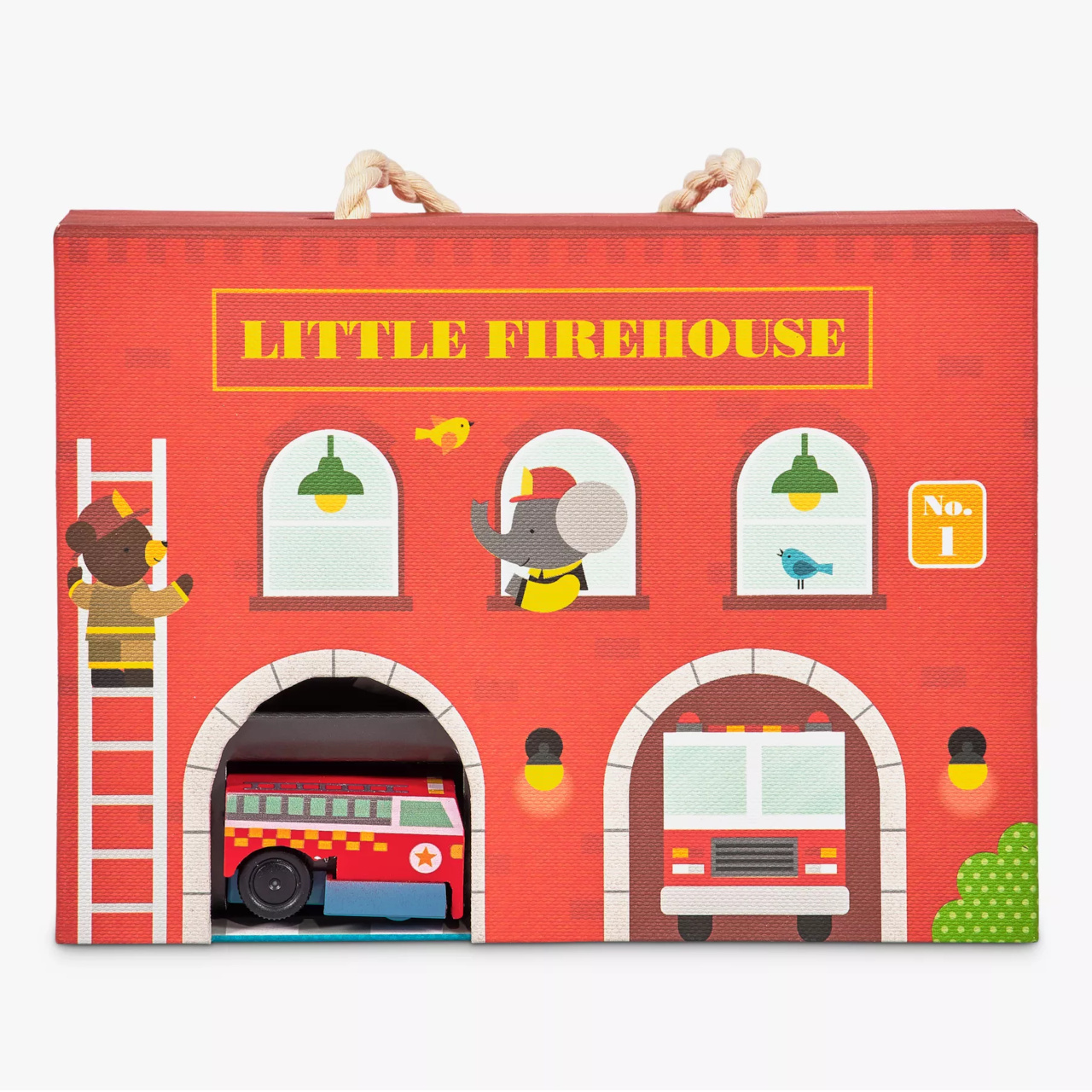 Pomoc už je na cestě! Natáhněte hasičské auto a sledujte, jak jede kolem hasičárny ke svému cíli! Perfektní hračka pro hodiny představivé hry. Krabici lze jednoduše přenášet díky madlu z lana.