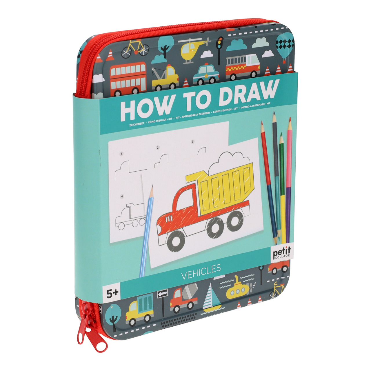 Návod, jak krok po kroku nakreslit 36 různých vozidel, od jízdních kol přes balóny a po lodě. Tato zábavná hračka je zabalena v kovovém penálu se zipem a můžete si ji tak vzít kamkoliv s sebou.
