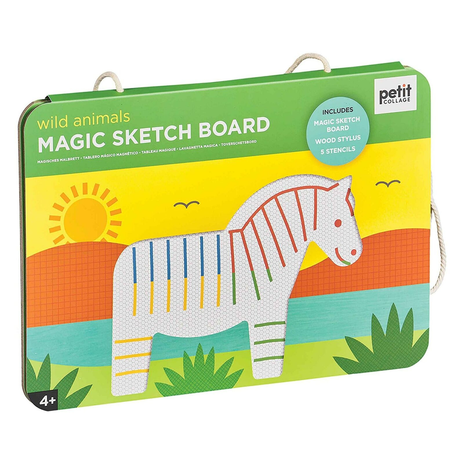 Rozprouděte představivost dětí s touto magnetickou kreslící tabulkou! Perfektní kreativní hračka domů i na cesty, má magickou tužku, která je připevněna k tabulce provázkem. Dále zde najdete mízítko a 5 ks předlohy pro kreslení. Když zrovna nekreslíte, můžete předlohy uložit do kapsy tabulky. Přiložte mizítko z druhé strany tabulky a rychle vymažte své umělecké dílo – můžete začít kreslit něco nového. Vyrobeno za použití recyklovaných materiálů, natištěno barvami na bázi zeleniny. Vhodné od 4 let. Neobsahuje BPA, ftaláty, olovo ani formaldehyd. Tolerance několika nemazatelných bodů.