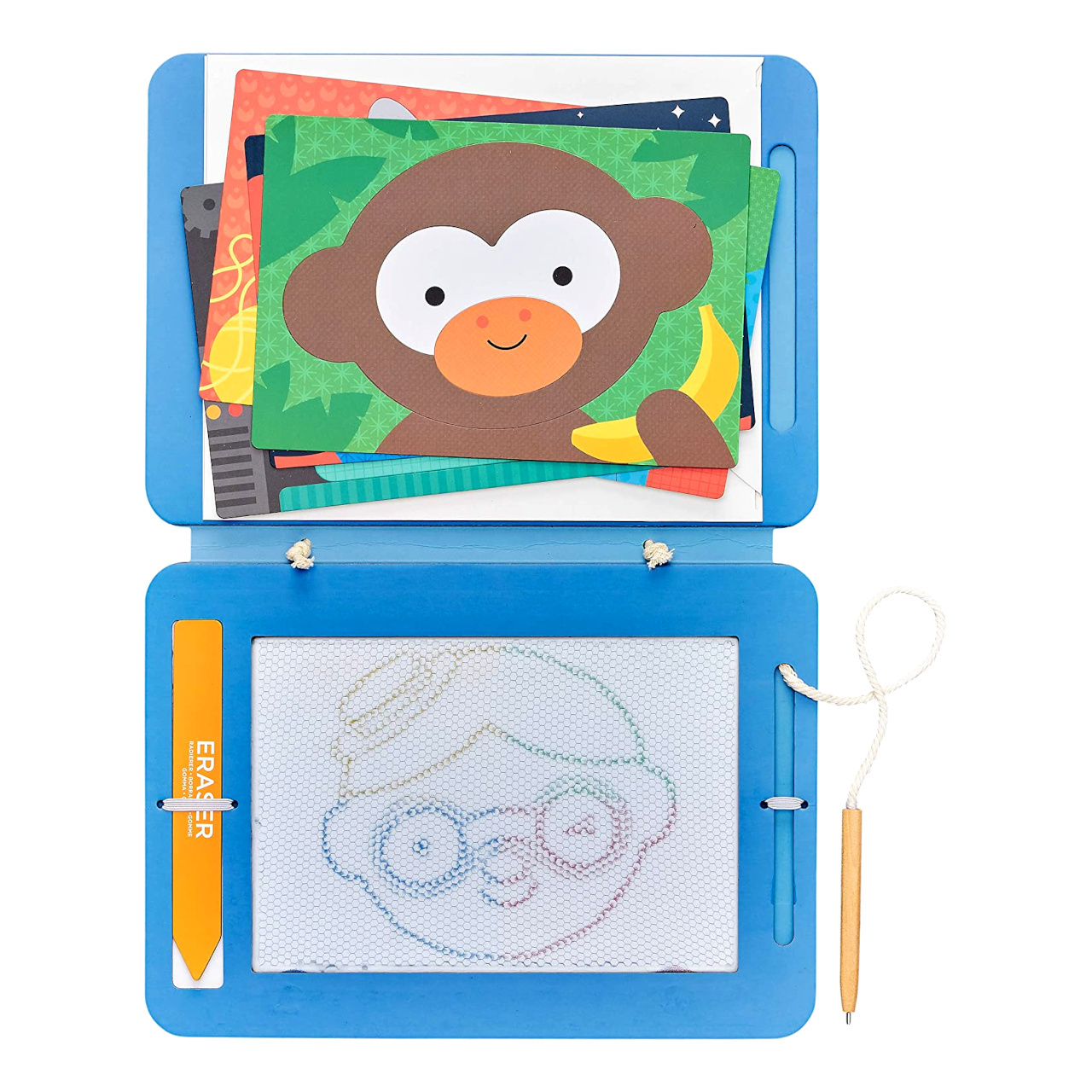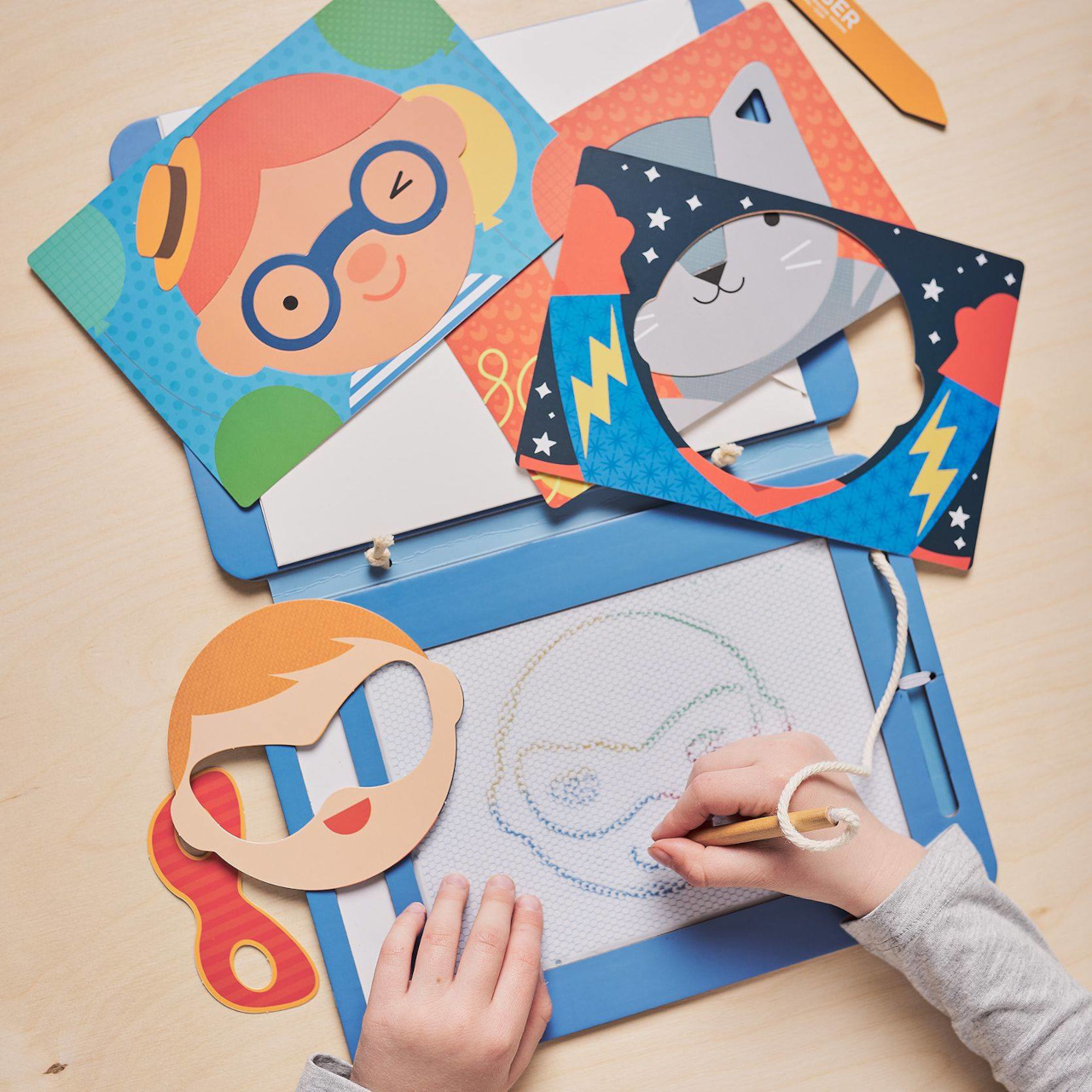 Rozprouděte představivost dětí s touto magnetickou kreslící tabulkou! Perfektní kreativní hračka domů i na cesty, má magickou tužku, která je připevněna k tabulce provázkem. Dále zde najdete mízítko a 5 ks předlohy pro kreslení. Když zrovna nekreslíte, můžete předlohy uložit do kapsy tabulky. Přiložte mizítko z druhé strany tabulky a rychle vymažte své umělecké dílo – můžete začít kreslit něco nového. Vyrobeno za použití recyklovaných materiálů, natištěno barvami na bázi zeleniny. Vhodné od 4 let. Neobsahuje BPA, ftaláty, olovo ani formaldehyd. Tolerance několika nemazatelných bodů.