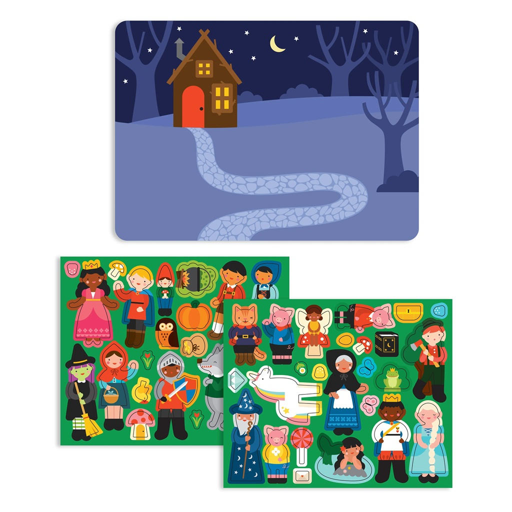 Tato přenosná sada her obsahuje 47 magnetických dílků a dvě magnetické tabulky, z nichž si můžete vybrat. Lze použít jako divadélko. Magnetickou scénku můžete i postavit díky zarážkám v krabici. Tvořte vlastní pohádkové příběhy ve dne nebo v noci. Můžete si vytvořit nekonečné kombinace scén. Praktická skládácí krabička, která napomáhá rychlému uklizení dílků a uložení na poličku. Robustní konstrukce je vyrobena tak, aby měla dlouhou životnost.