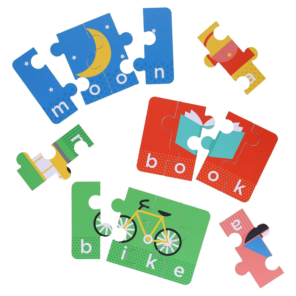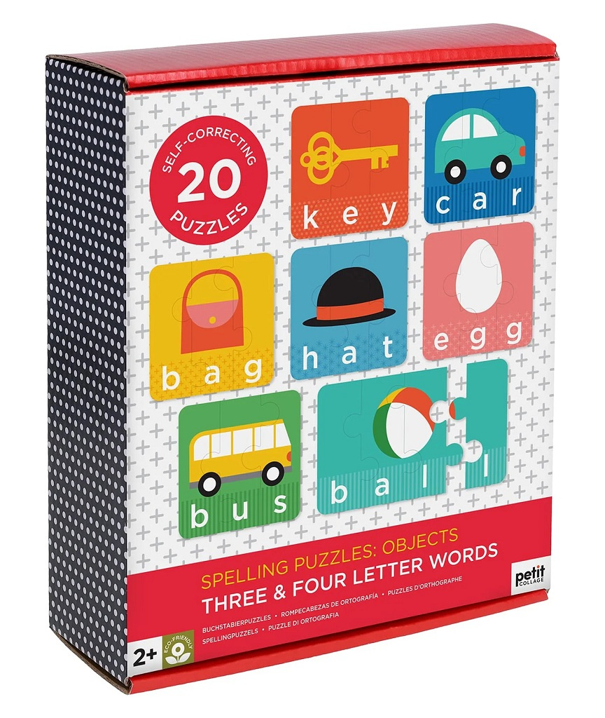 20 navzájem spojitelných puzzlí se zvířátky a jejich anglickým pojmenováním. Tato sada zobrazuje každodenní předměty a má originální, poutavé zpracování, které spojuje obrázky se slovíčky o 3 až 4 písmenkách. Vzhledem ke své velikosti a tloušťce se slova snadno čtou. Skvělá didaktická pomůcka pro první hláskování a setkání s angličtinou!