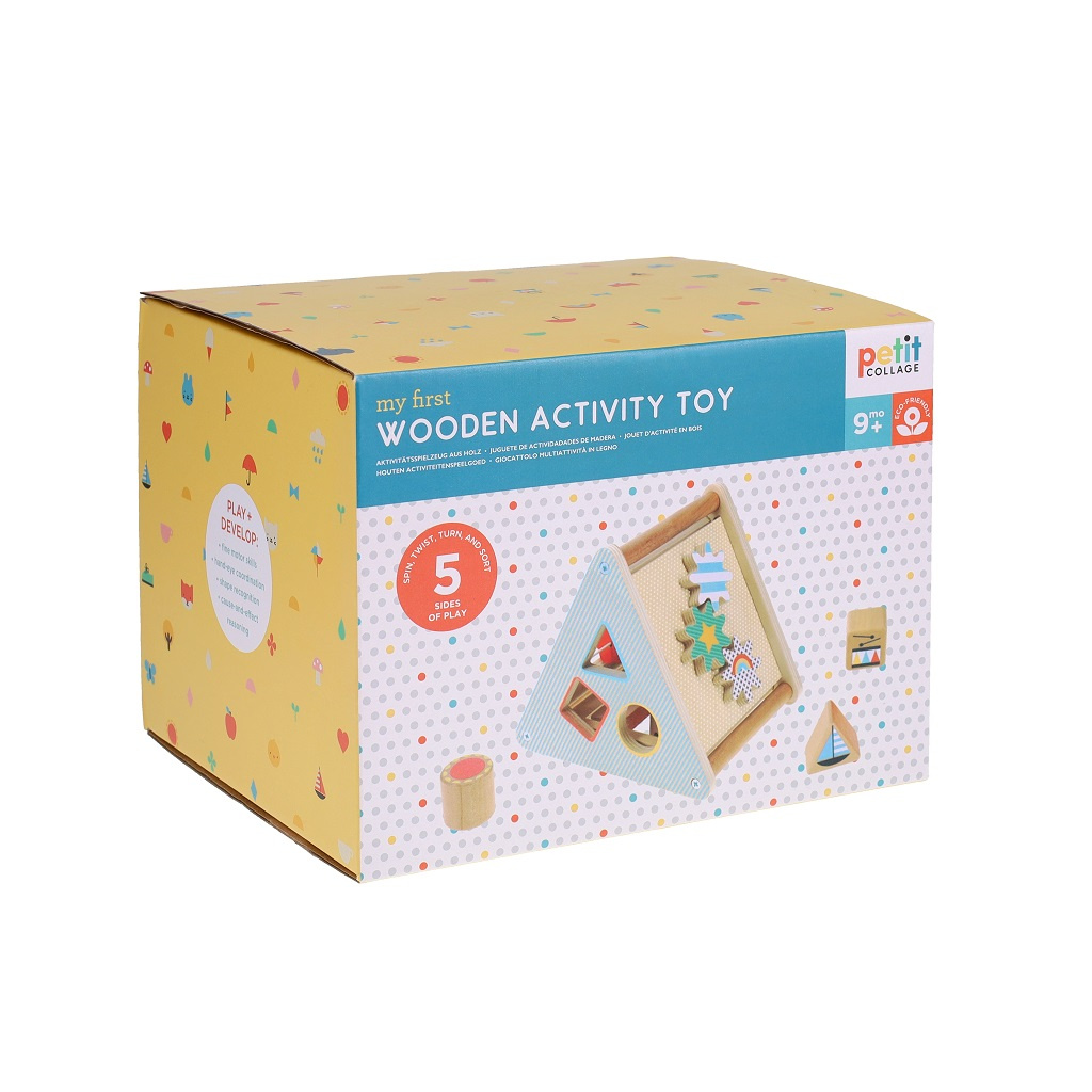 Otočte ozubená kola nebo vložte do vkládacích otvorů správné tvary. Prozkoumejte možné kombinace. Dítě při hře rozvíjí logiku, jemnou motoriku, koordinaci a rozpoznávání barev. Tato barevná dřevěná hračka vhodná pro děti ležících na bříšku, nabízí několik způsobů hraní.