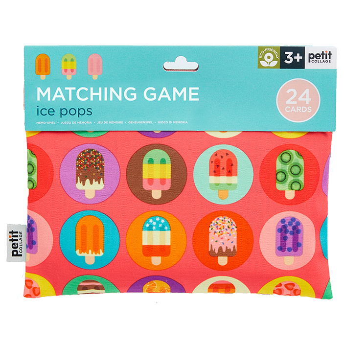 Krásné barevné pexeso pro předškolní děti, párujte nanuky. Hrou dítě rozvíjí rozpoznávání barev a paměť. Pestrobarevné ikony nanuků jsou vyvedeny na kartičkách z recyklovaného papíru a baleny ve zdobené a praktické taštičce s uzavíráním na zip, vyrobené z odolného recyklovaného polyesteru.
