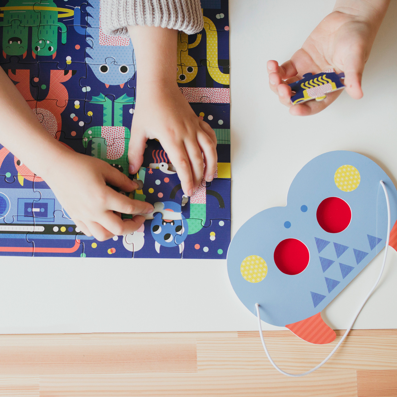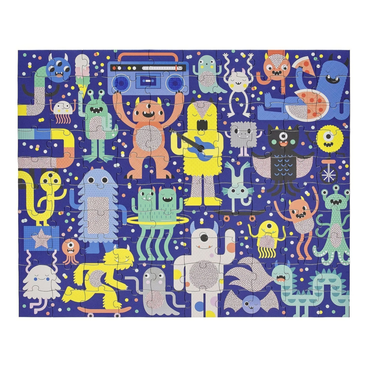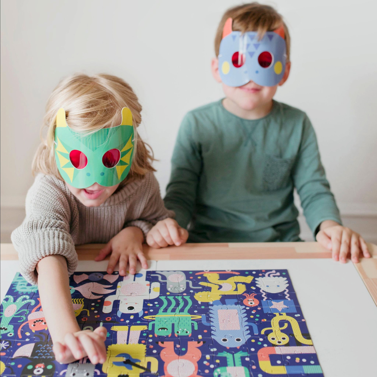 Složte puzzle, a poté pomocí dvou zvířecích 3D brýlí najděte objekty, které se skrývají v rušné scéně. Tyto roztomilé příšerky jsou připraveny slavit na festivalu, ale ztratily pár věcí. Poskládejte puzzle, nasaďte si 3D brýle a pomozte jim najít skryté objekty - 5 sladkostí, 4 objekty s kolečky, 3 pokrývky hlavy, 2 objekty spjaté s hudbou, 1 páchnoucí věc.