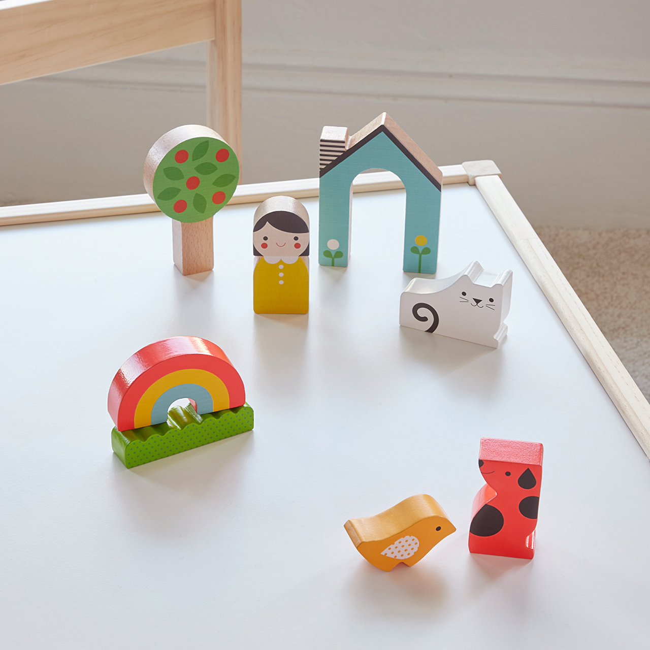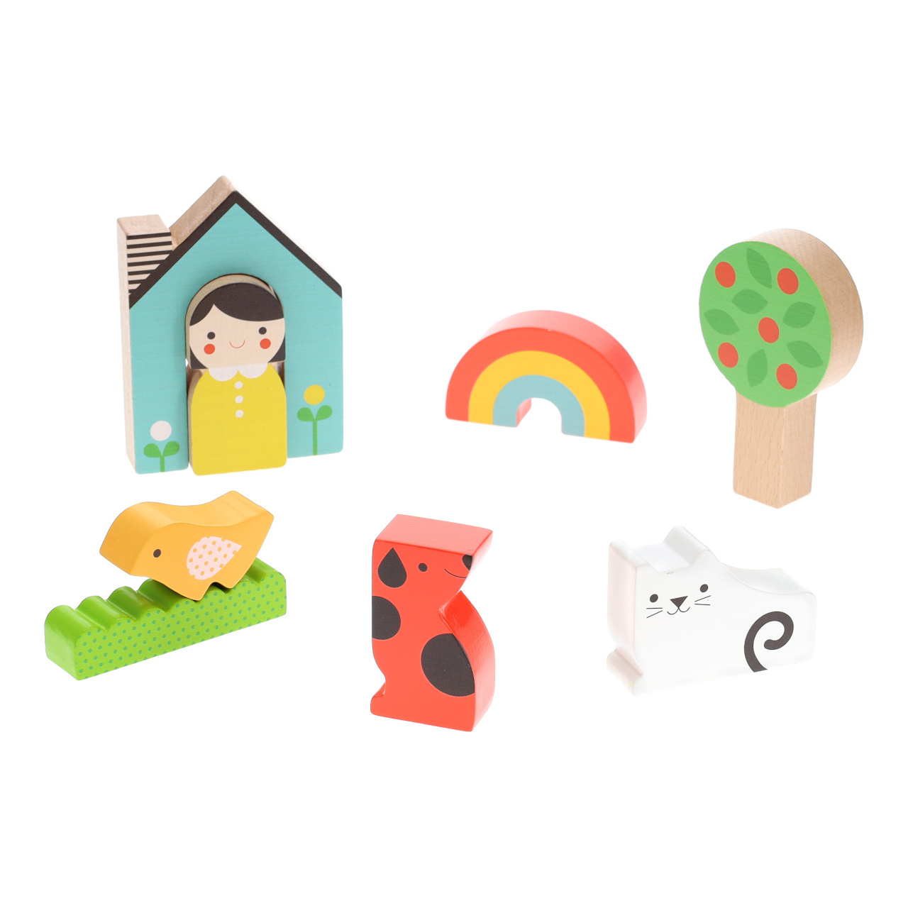 Nechejte děti rozvíjet příběhy s barevnou skládačkou domečku a postaviček. Mohou tvořit domácké scény, nebo dílky sestavovat jako hlavolam. Dílky jsou vyrobeny z odolné překližky a přizpůsobeny dětským ručkám.