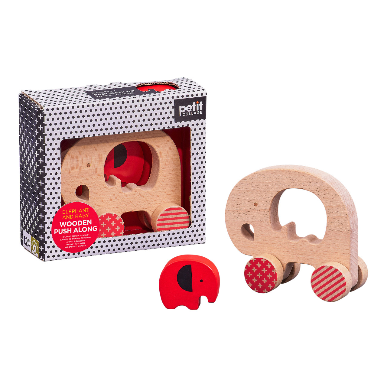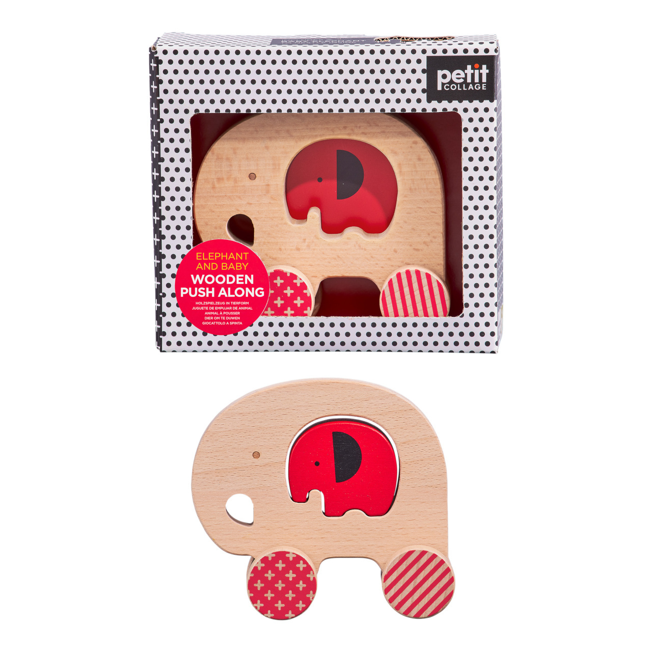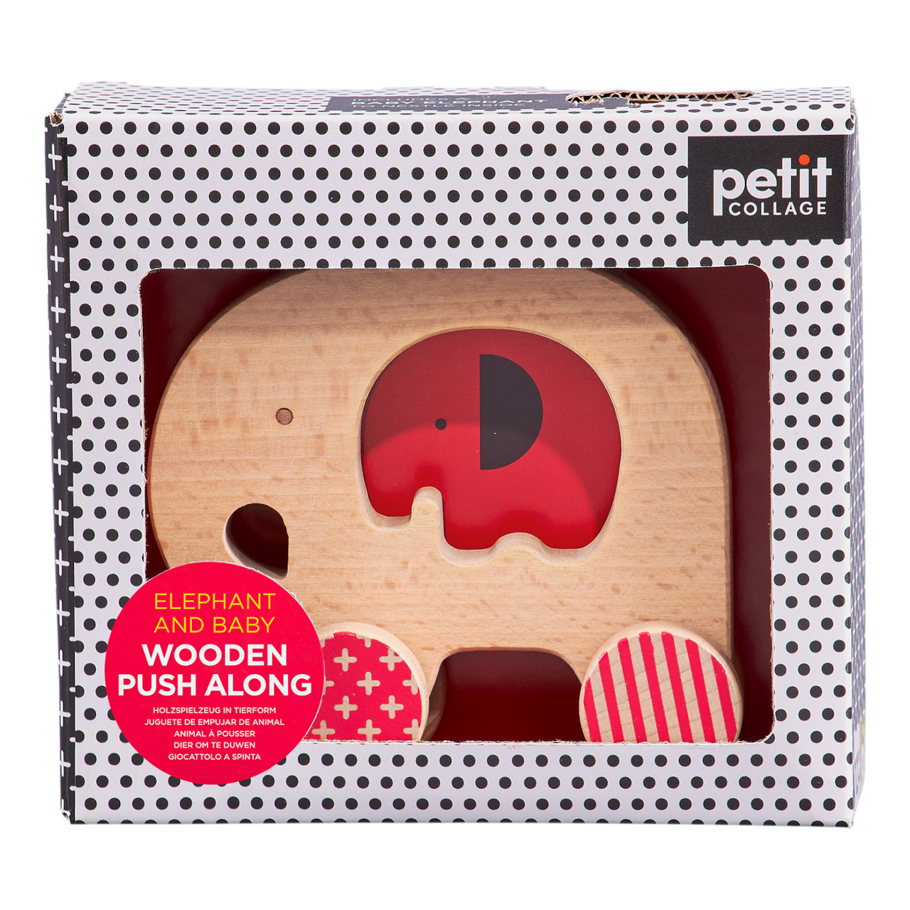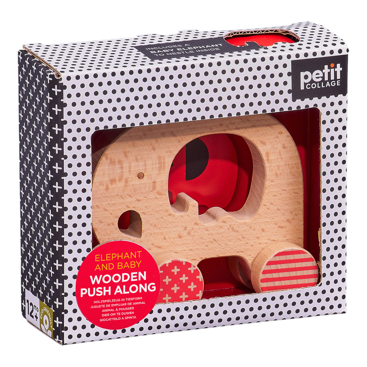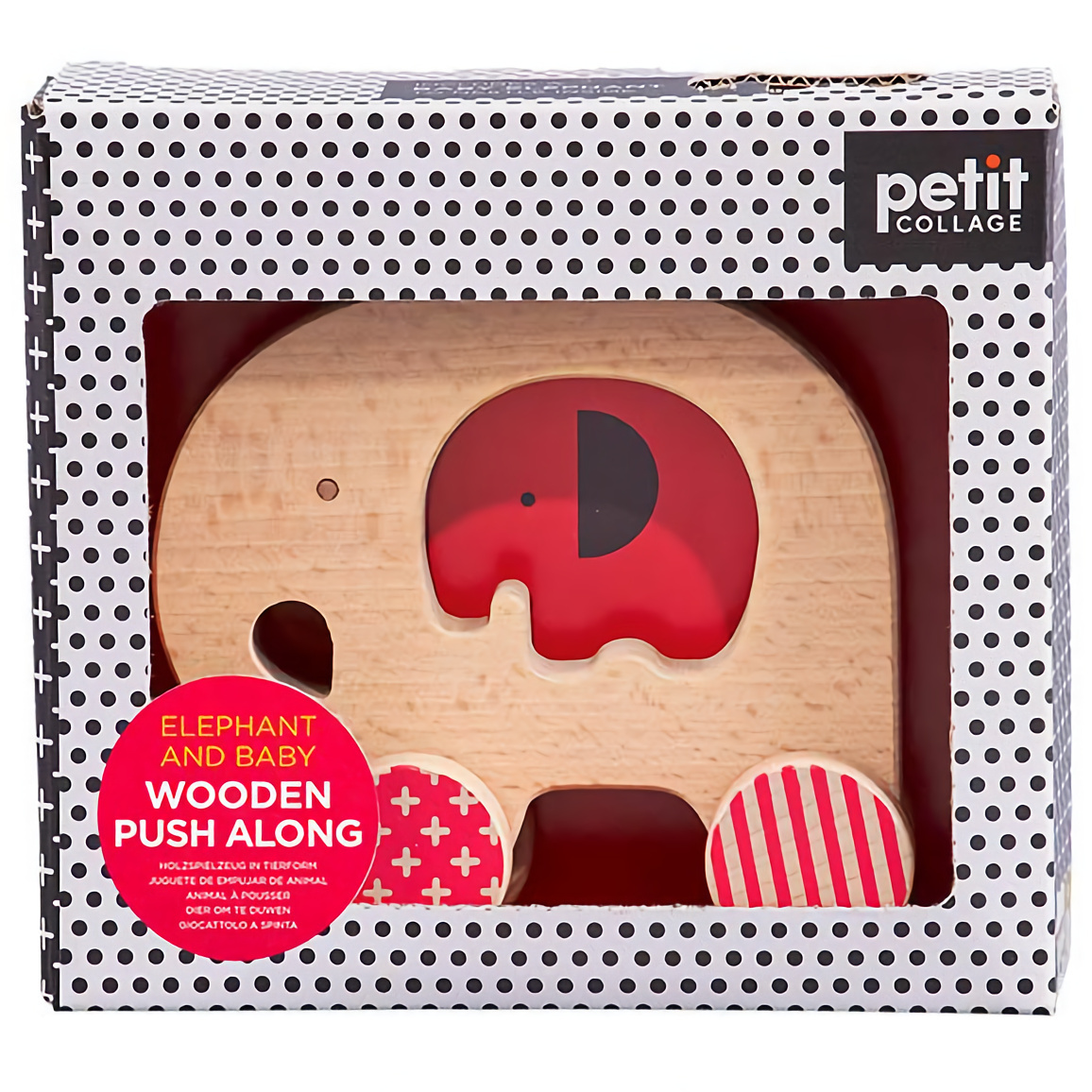 Dřevěný slon na kolečkách je zaoblený a jednoduše uchopitelný. Uprostřed má hračka otvor, v němž je volně uložena figurka slůněte. Je zabalená v krásné krabici a je perfektním dárkem pro maminky v očekávání, nebo jako narozeninový dárek dětí. Vyrobeno z bukového masivu s certifikátem FSC®, lakováno netoxickými barvami na bázi vody. Obal vyroben z recyklovaného kartonu a natištěn inkoustem ze sóje. Hračka neobsahuje BPA, olovo a je netoxická. Produkty Petitcollage jsou vyrobeny s ohledem na zdraví dětí a planety. Splňuje všechny bezpečnostní normy.