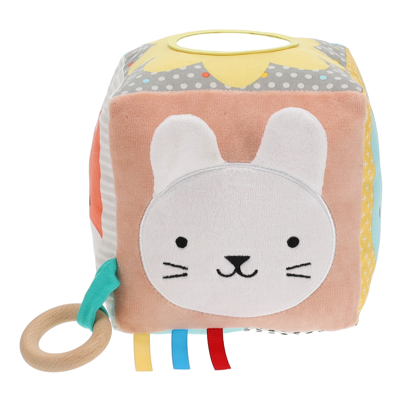 Měkká a hebká kostka provedením stimuluje hmat nejmenších. Je vyvedena v kontrastních barvách a vybavena rolničkou, aby poutala pozornost. Na stěnách jsou vyobrazeny přátelské obličeje zvířátek, které stimulují zvědavost vyčnívajícími oušky. Kostka je také vybavena zrcátkem, dozdobena několika stuhami a vybavena dřevěným kroužkem sloužícím jako kousátko. Je vyrobena z organické bavlny a plněná materiálem z recyklovaných plastových lahví.