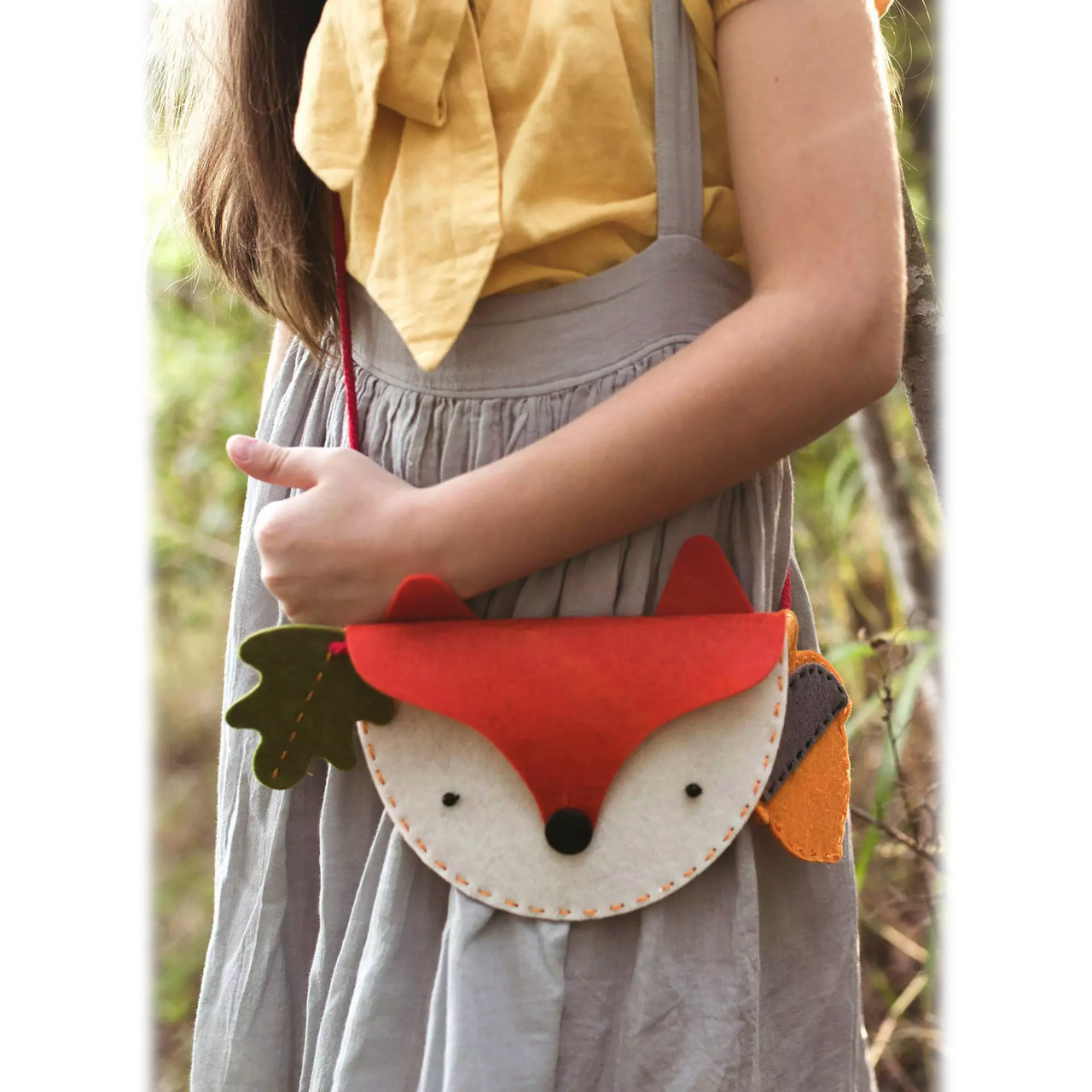S touto tvořivou sadou si snadno vyrobíte svou vlastní kabelku přes tělo ve tvaru lišky, a také peněženku na zip ve tvaru žaludu. Nepotřebujete ani lepidlo! Pro děti od 6 let věku.