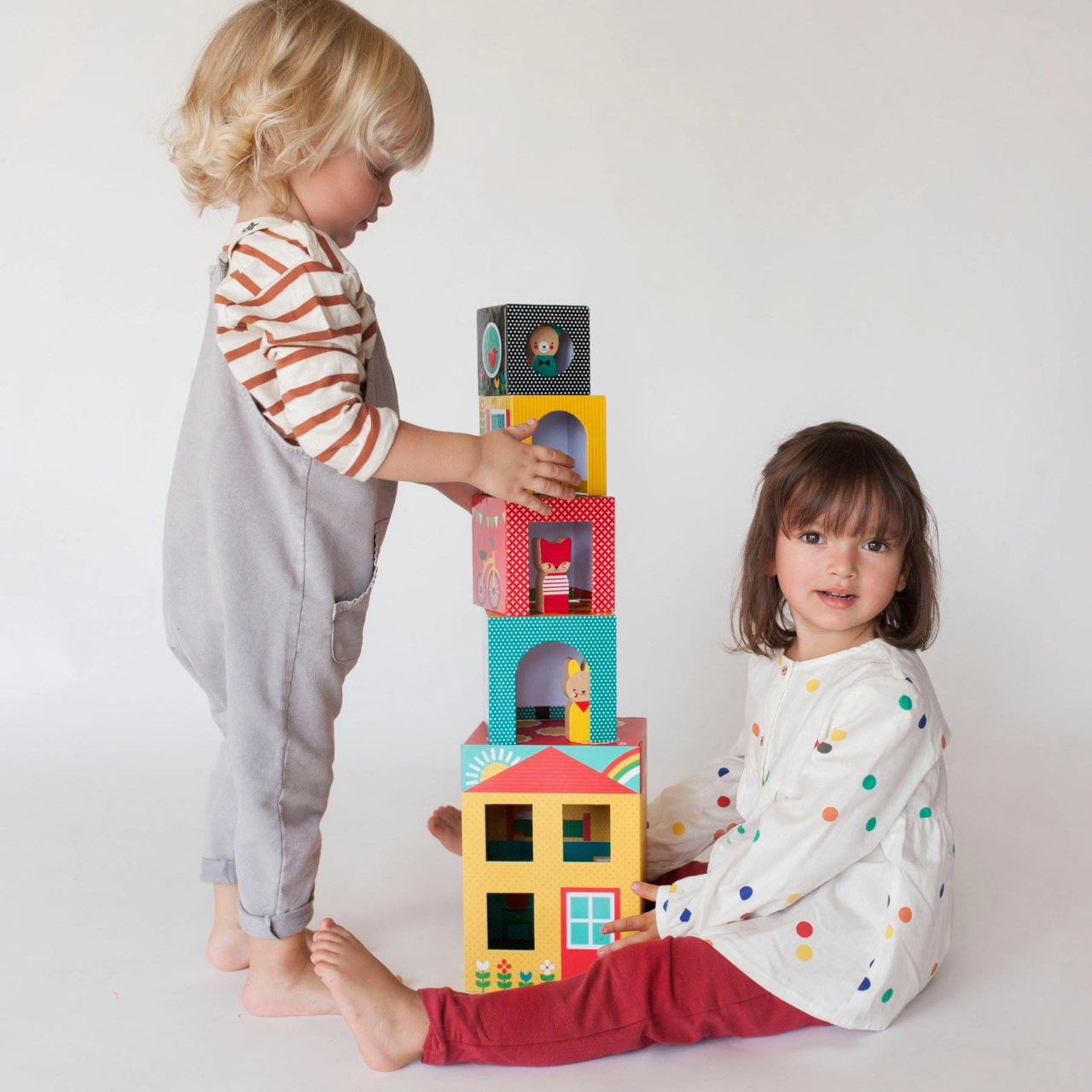 Skládejte kostky na sebe, abyste vytvořili perfektní dům pro vaše tři nové přátele. Sledujte, jak si hrají a volají na sebe ze dveří nebo z okna jednotlivých pater. Když je čas jít spát, jednoduše naskládejte kostky do sebe a uložte i s kamarády ke spánku.