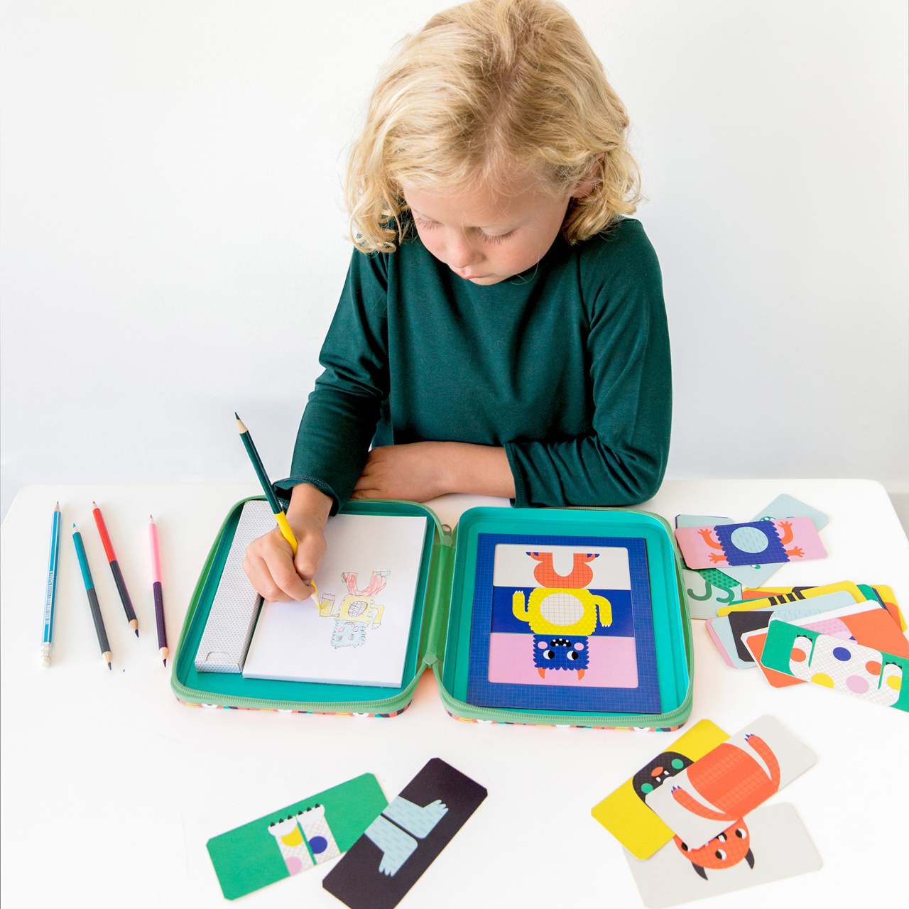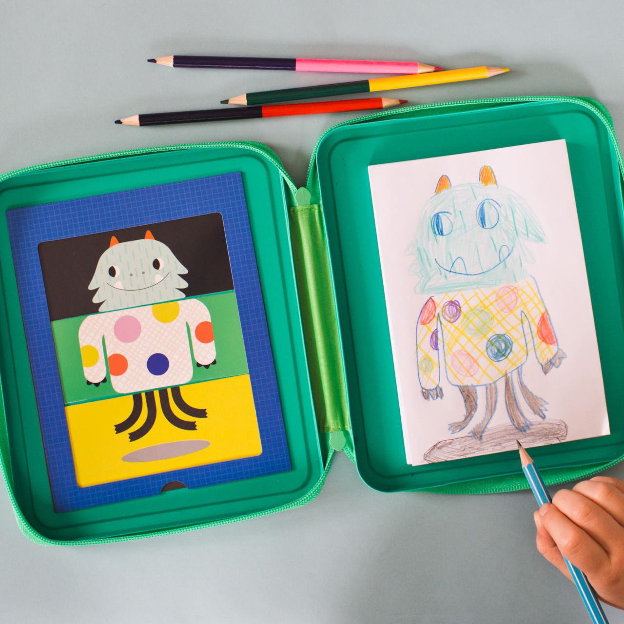 Vytvořte si předlohu a nakreslete příšerku. V balení naleznete 24 kartiček, z kterých si postavíte příšerku dle libosti a poté ji zkusíte nakreslit. Sada je uložena v magnetickém pouzdru.