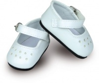 Pár bílých střevíčků s řemínkem určený zejména pro panenky Petitcollin řady Minette. Dodáváno v uzavíratelném plastovém sáčku.