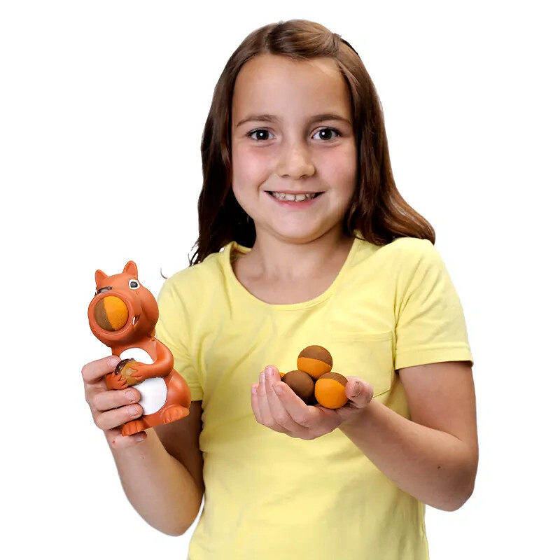 Plopáček VEVERKA je skvělá hračka pro děti, která kombinuje zábavu a jemnou motoriku. V sadě najdete šest pěnových oříšků, které pak bezpečně doletí až do vzdálenosti 6 metrů! Tato veselá hra s veverkou je navržena tak, aby byla bezpečná a zábavná, a proto byste měli používat pouze originální měkké pěnové míčky. Pokud byste potřebovali více míčků nebo náhradní díly, tak je naleznete níže. Doufáme, že si s Plopáčkem užijete spoustu skvělé zábavy!