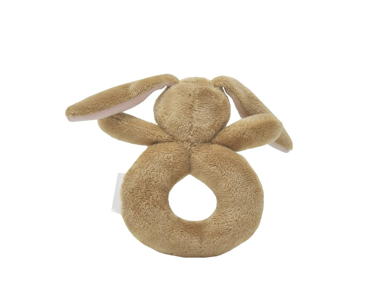 Chrastítko ve tvaru zajíčka inspirované knihou „Hádej, jak moc tě mám rád“ upoutá pozornost dětí. Chrastítko je vyrobeno z měkkého plyše a má vyšívaný obličej a na kroužku nápis „I love you“. Perfektní dárek, který bude stimulovat smysly dětí.