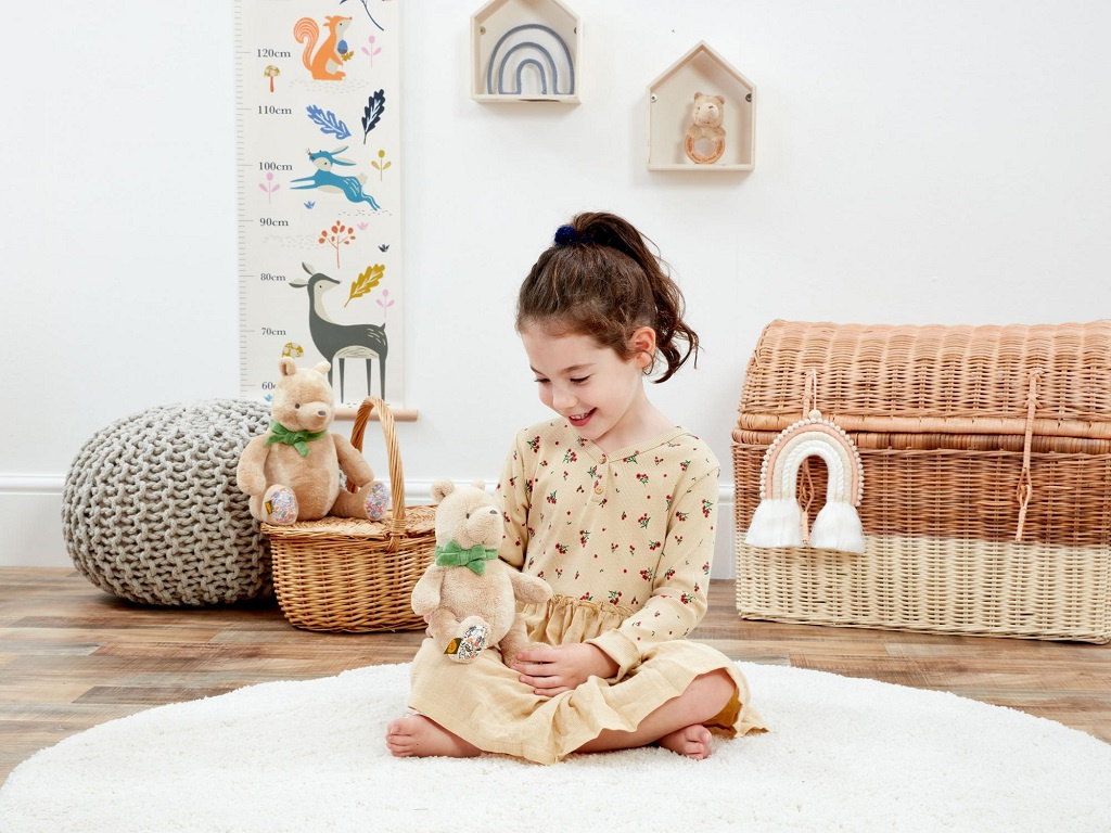 Vytvořte si přátelství, které vydrží na celý život. Tento rozkošný medvídek je perfektním prvním společníkem pro miminko. Klasický plyšák, který oživuje rozmarné vyprávění příběhů A. A. Milne ze stokorcového lesa. Medvídek má kolem krku uvázanou stylovou zelenou šálu s mašličkou a jeho tlapky mají krásný vzor inspirovaný lesem. Medvídek je vyroben ze super měkkých látek a z udržitelných materiálů. Výplně jsou vyrobeny z recyklovaných plastových láhví a recyklované plyšové látky. Roztomilá plyšová hračka Medvídek Pú je dokonalý mazlivý přítel a je i skvělým novorozeneckým dárkem.