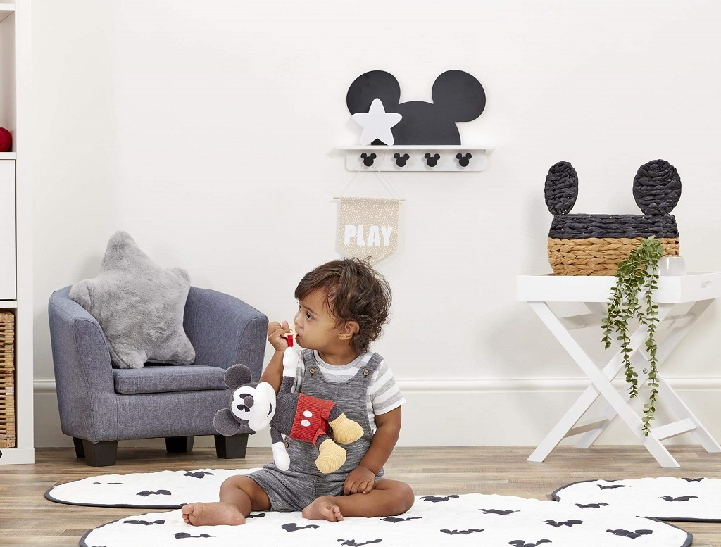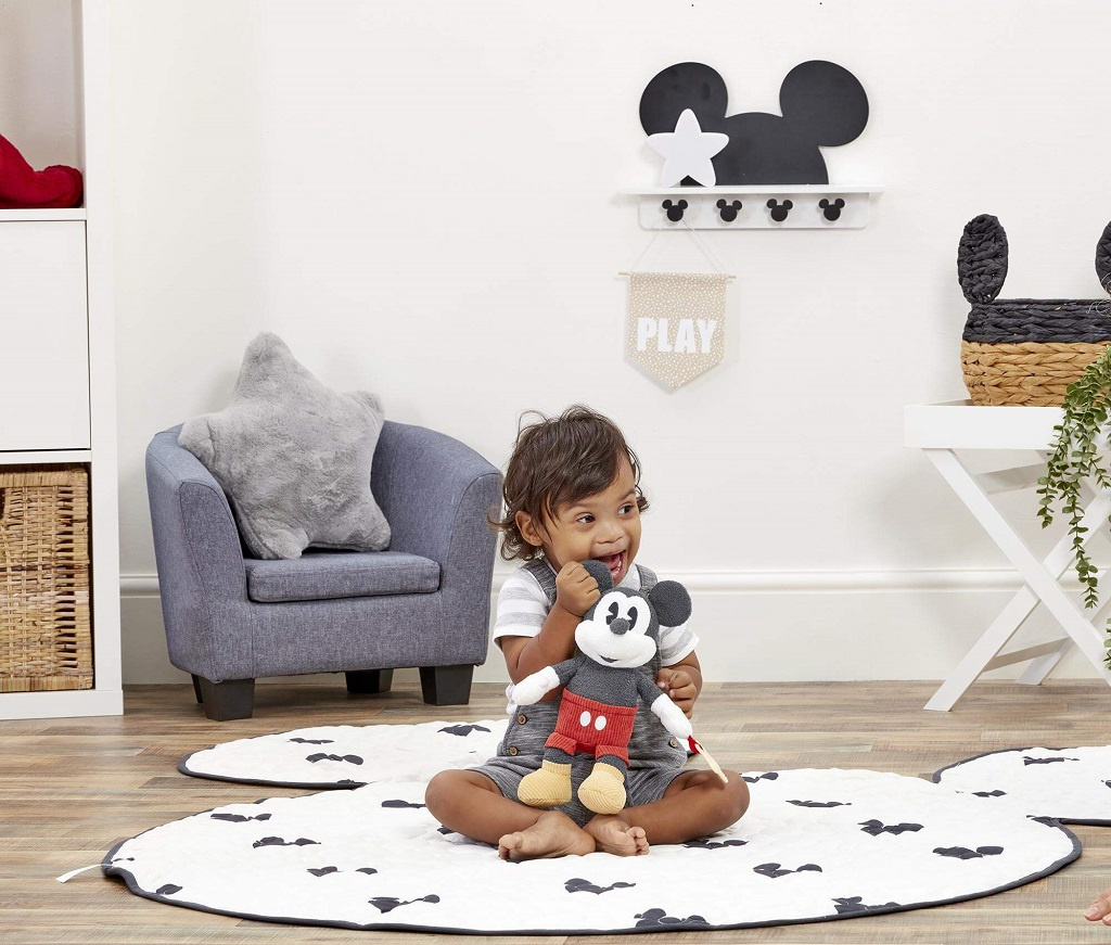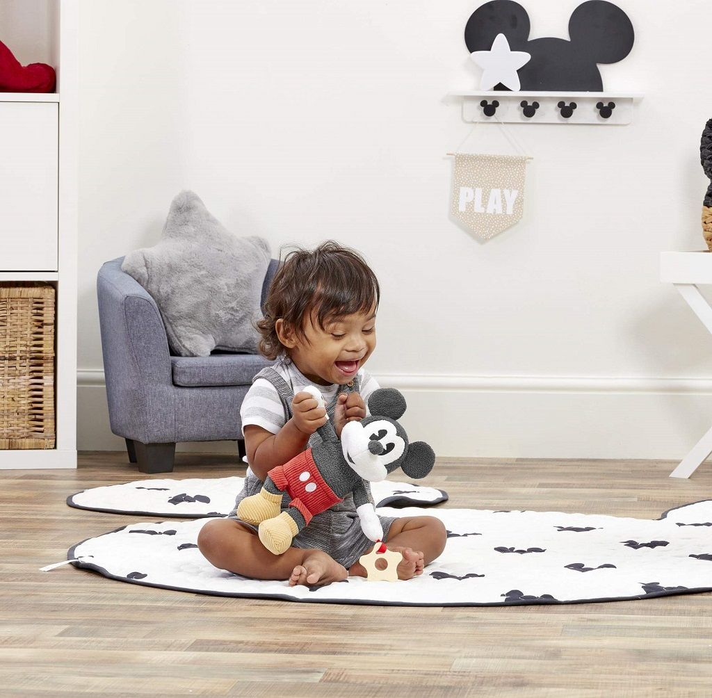 Hrajte si s Mickeym! Se zábavnou plyšovou hračkou Disney Mickey Mouse Activity si užijete spoustu zábavy a her. Probuďte svou malou představivost touto 19 cm super měkkou hračkou Activity, která oslavuje jednu z nejslavnějších světových kreslených postaviček všech dob. Tato super plyšová hračka Mickey Mouse, zbožňovaná generacemi od roku 1928, která zachycuje jeho ikonické rysy a optimistické, odvážné a roztomilé vlastnosti, je dokonalým parťákem na hraní pro dobrodružství vašeho nejmenšího! Kousátko ve tvaru hvězdy, které je vhodné od narození, je připevněné k Mickeyho ruce. Mickey je oblečen do červených šortek a má žluté vrásčité boty, které u dětí podporují hmatové a smyslové zkoumání prostřednictvím hry. Tato hračka také pomáhá rozvoji jemných motorických dovedností. Mickey Mouse je také dokonalým plyšovým kamarádem, se kterým si můžete užívat vyprávění nebo se jen tak přitulit před spaním.