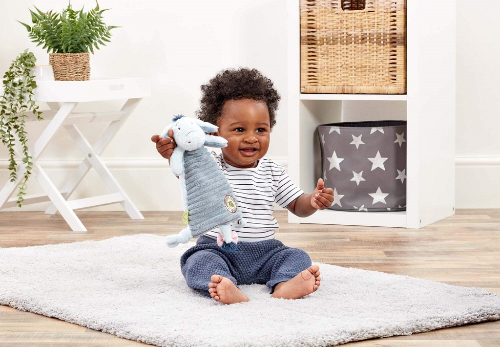 Super měkký komfortní muchláček Ijáček z příběhů Medvídka Pú je vyrobený z nejkvalitnější, prémiové plyšové látky a je dokonalým společníkem na mazlení. Založeno na slavné postavě z hřejivých příběhů A. A. Milnea o Medvídku Pú. Oslík má krásné vyšívané detaily a prémiovou více strukturovanou hmatovou látku, která podporuje smyslovou hru. Tento muchláček je pratelný v ruce.
