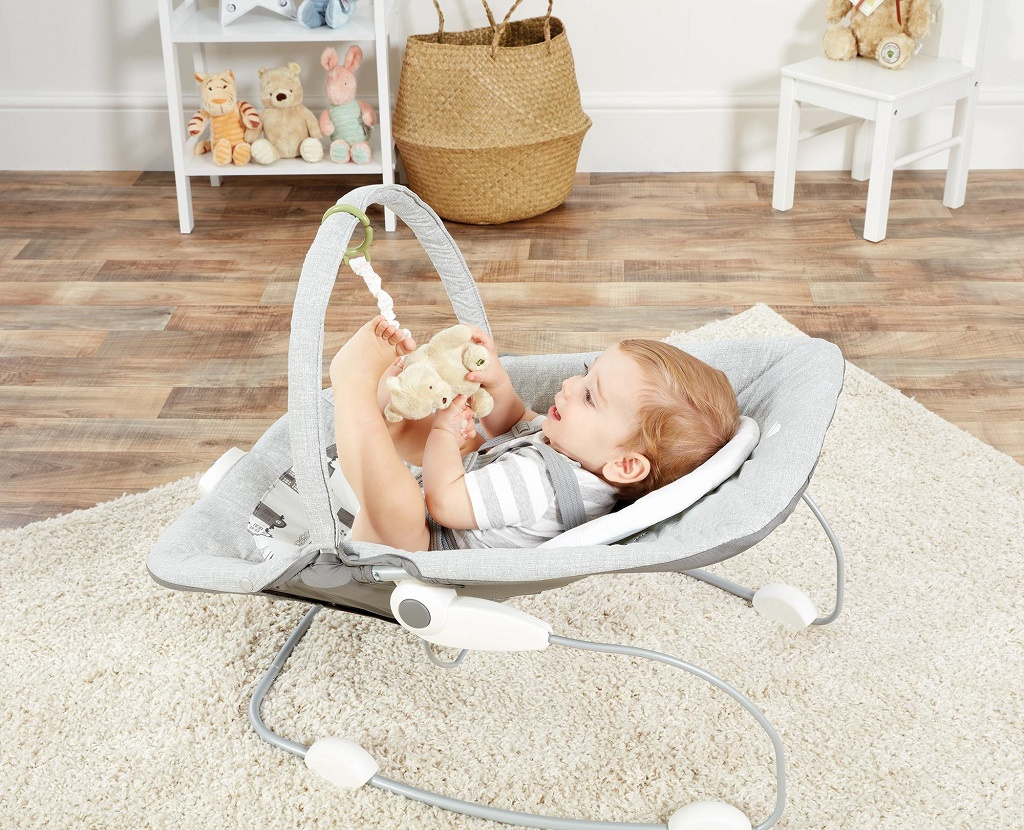 Zatáhněte dolů za hračku a sledujte, jak se miminko hihňá, když se Medvídek Pú třese při návratu zpět nahoru. Zábavná, hmatová a interaktivní hračka. Super měkký a stylově jednoduchý třepotající se Medvídek Pú zabaví dítě na celé hodiny. Hračka je jednoduše uchopitelná a její připevnění na hrazdičku, postýlku nebo třeba autosedačku znamená, že si dítě může užít zábavu s vrtěním nejen doma ale i na cestách.