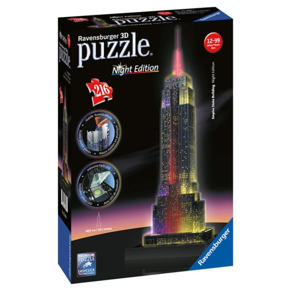 3D model Empire State Building "Night Edition" je radost skládat. Můžete skládat dle předlohy nebo čísel, které jsou součástí každého z 216 plastových dílků. Výsledkem je úžasný model, který složíte bez potřeby lepení! Svítí, mění barvy.