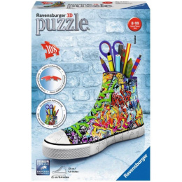 3D Puzzle ve tvaru kecky s motivem grafitů. V balení jsou puzzle o 108 dílcích. Velikost složeného motivu je 21,5x12 cm. Baleno v krabici. Doporučeno pro děti od 8 let. Ravensburger AG, Robert-Bosch-Straße 1, 88214 Ravensburg, Germany, info@ravensburger.de