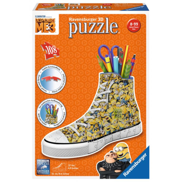 3D Puzzle v licenci Mimoni. V balení jsou puzzle o 108 dílcích. Velikost složeného motivu je 21,5 x 12 cm. Baleno v krabici. Doporučený věk od 8 let. Ravensburger AG, Robert-Bosch-Straße 1, 88214 Ravensburg, Germany, info@ravensburger.de