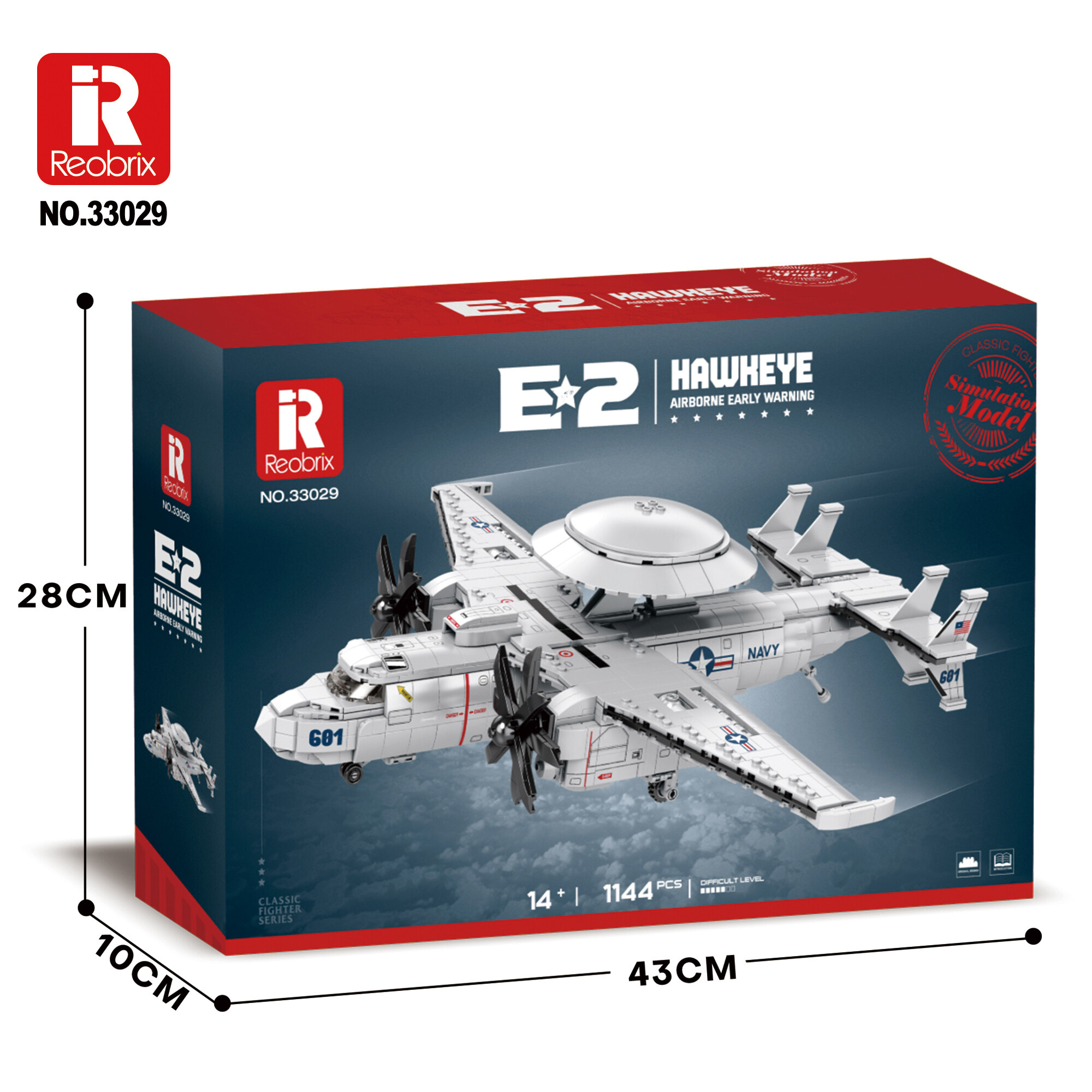 Postavte si legendu námořního letectví! Reobrix 33029 E-2 Hawkeye je detailní model slavného letounu včasné výstrahy, který je typický svou radarovou kopulí nad trupem.