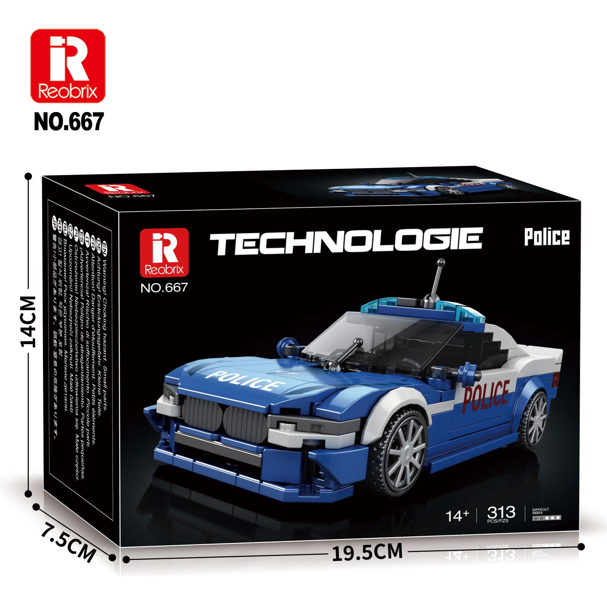 Reobrix 667 Policejní automobil je skvělým doplňkem sbírky městských vozidel a potěší každého, kdo má rád realistické technické modely v kompaktním provedení.