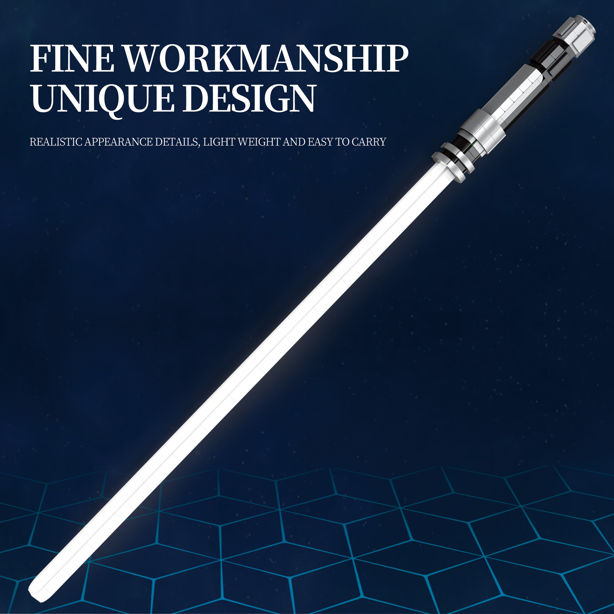 Z 606 dílků sestavíte detailní model s charakteristickou rukojetí a výraznou bílou čepelí. Díky promyšlené konstrukci, realistickým detailům a stylovému designu působí model velmi autenticky a skvěle se hodí na vystavení na polici, pracovním stole nebo ve vitríně jako součást tematické sbírky.