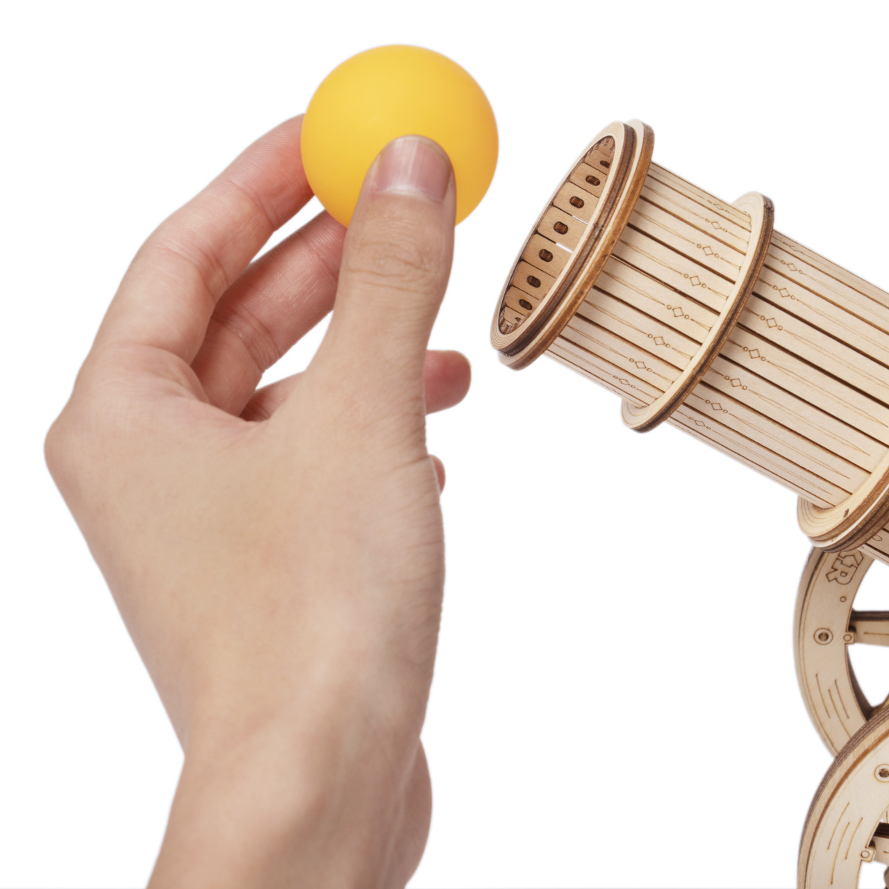 Obléhací kanón se může pyšnit mnoha atraktivními detaily věrně odrážejícími středověké zbraně. Jeho rozměrná hlaveň je přizpůsobena ke střelbě pingpongových míčků, což z něj dělá zvláště univerzální hračku. Mechanismus střelby je ručně natahován a je opatřen spouští, úhel odpalu je možno volně nastavit. Díky velkým kolům lze kanón snadno přemístit, a přizpůsobit tak situaci na bojišti. Skládačka je dodávána v nesloženém stavu, balena v krabici. Vybaveno detailním návodem k sestavení.