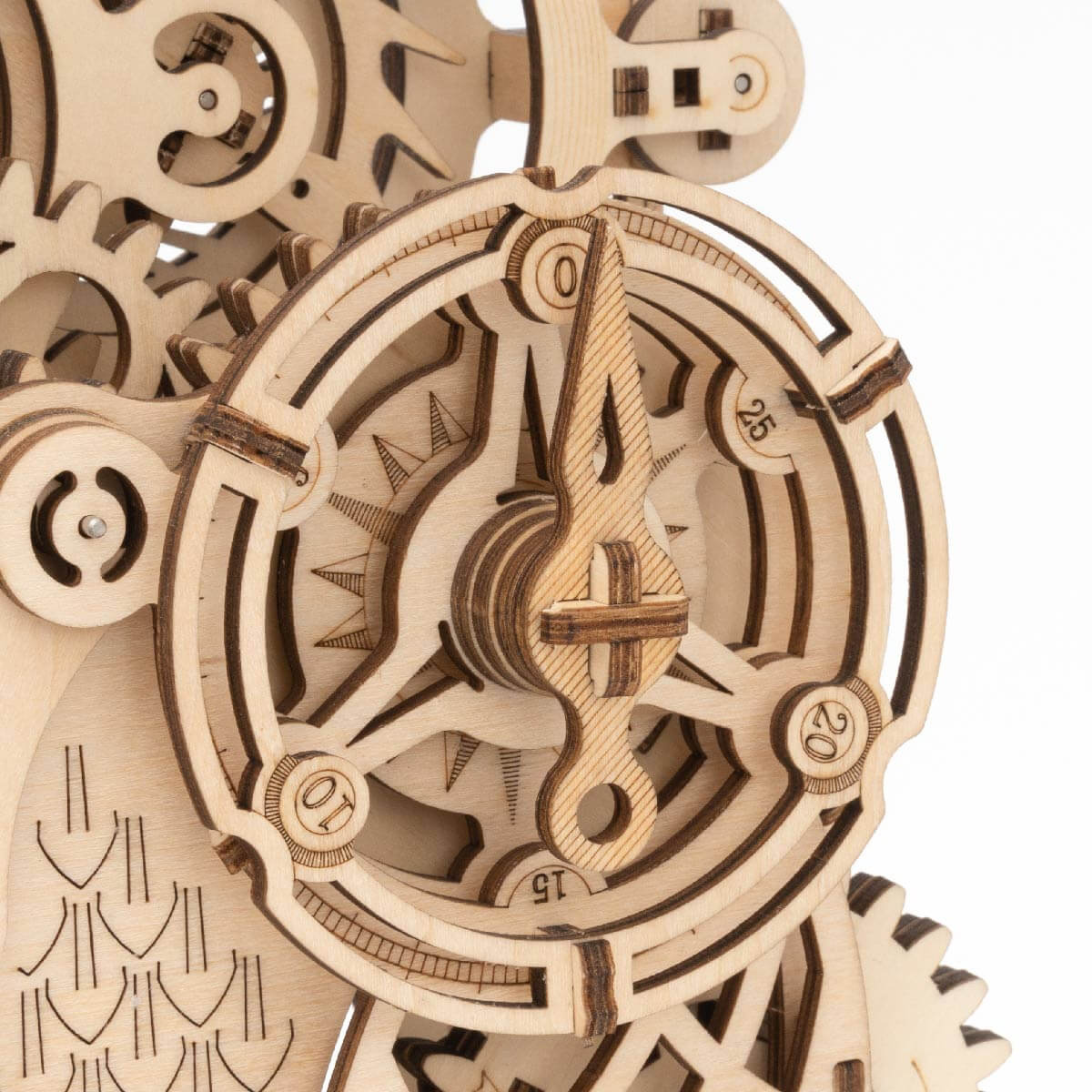 Je nutno bedlivě sledovat čas? Stavebnice hodin s minutkou vyrobená z překližky. V podobě sovy neujdou pozornosti, celková podoba je navíc příhodně doplněna mechanickými detaily. Konstrukce umožňuje nahlížet nejen na chod kyvadla, ale i na práci únikového mechanismu a soukolí. Plně funkční hodiny jsou však poháněny elektricky a natahovací mechanismus minutky vybavené signalizací slouží jako atraktivní doplněk, nabízí maximální rozsah třicet minut. Jedinečný dárek pro všechny milovníky kutilství, luxusní interiérová dekorace do pokoje či kanceláře. Skládačka je dodávána v nesloženém stavu, balena v krabici. Vybaveno detailním návodem k sestavení.