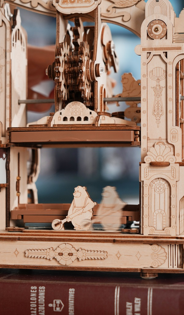 Vítejte v tiskovém závodě Little Bear kde špetka inkoustu udělá z Vašich nápadů divy! Zatáhněte za páku a parta pilných tlapek se vrhne do akce! Aby medvědí kolegové při práci lépe viděli, je továrna opatřena o LED světla. Klasický tiskařský lis využívá pohyblivý princip tisku, jenž umožňuje libovolně upravovat a bez námahy tisknout zprávy a karty. Černá tisková kazeta, do níž se přidává inkoust na vodní bázi, je znovu použitelná - hraní a tisk s medvídky je tudíž bez mezí! Vosk není součástí balení (můžete např. použít obyčejné svíčky, voskovky, včelí vosk či jiný podobný materiál).