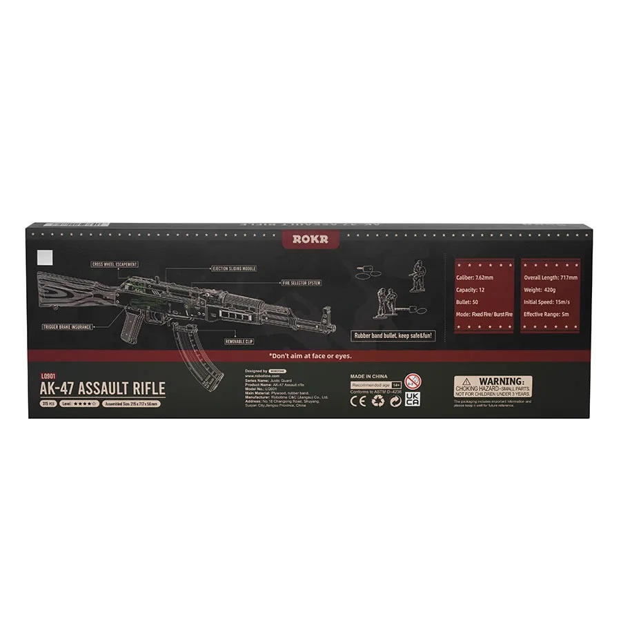 Naši designéři se postarali o každý detail, aby bylo sestavování co nejvěrnější skutečné útočné pušce AK-47. Kromě toho, že tato hračka nabízí pohlcující a náročný stavitelský zážitek, je také skvělým a originálním dárkem pro děti i dospělé. Ať už jste zkušený stavitel 3D puzzlí nebo začátečník, zjistíte, že toto dřevěné puzzle bude náročné i obohacující.Zažijte radost z vlastnoručního sestavení legendární útočné pušky a připravte se na mnoho hodin zábavy a dobrodružství s naší dřevěnou simulační hračkou útočné pušky. Ale pamatujte, nesmíte mířit na lidi nebo zvířata!